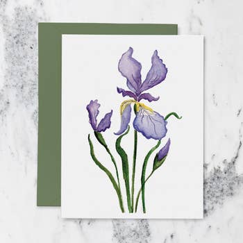 These midwest printed crocus notecards are blank on the inside, and feature a linen texture. The original watercolor artwork can be seen when the notecard is laid flat. Text on the back of the notecard: "Crocus - symbolizes rebirth, joy and new beginnings" Notecard size: 4.25in x 5.5in White envelope included. Packaged with non-flap protective clear sleeve.