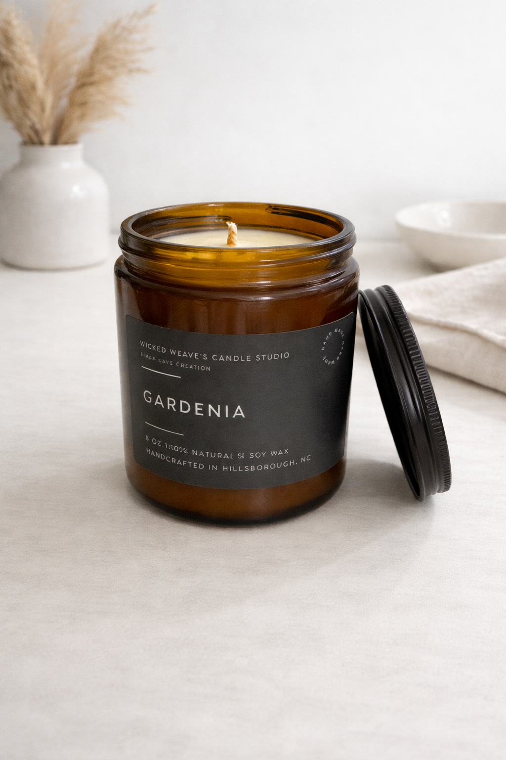 Sit back and enjoy the fragrant accords of tropical white florals in full bloom. Our Gardenia candle has a dreamy scent begins with top notes of gardenia, and lemon peel as it gives way to a blossoming heart of tuberose, jasmine, and green florals. A soft powdery finish gives depth to this earthy floral. Poured in a glass jar and finished with a bronze lid. - Handcrafted in Buffalo, NY 100% Soy wax from USA grown Soy Beans USA produced glassware Lead-Free Wicks. Phthalate free fragrances 8oz.