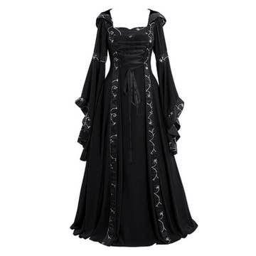 This elegant mythical goddess dress has a sheer overskirt, cascading chiffon sashes, and gold trim embellishment. It also includes a gold leaf headpiece and armbands. * Three-piece set * Wipe clean * 100% polyester * Imported