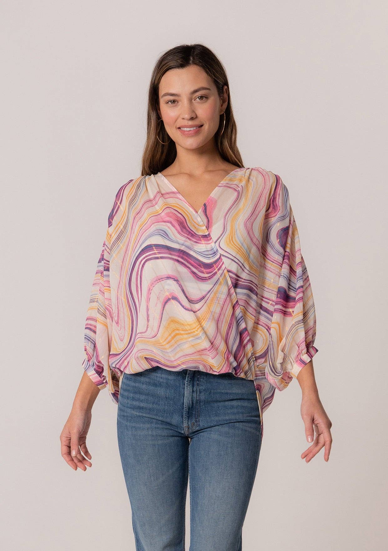 Printed Silk Cold shoulder with balloon hem One size fits all 100% Silk Made in Italy
