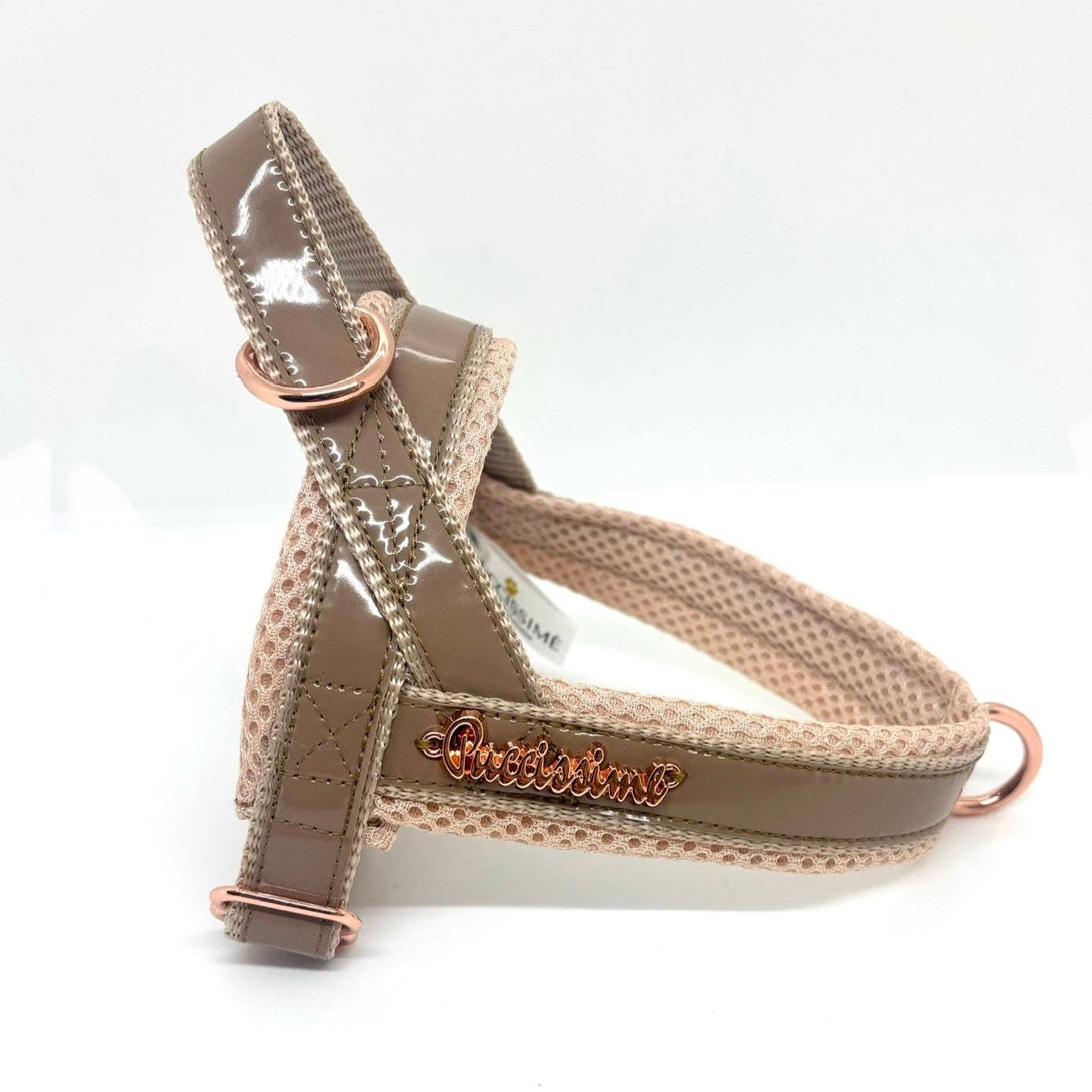 Please note: this product won’t be restocked, but a brand new collection is just around the corner. One of our most popular shades, the Blush Pink Step In Dog Harness is designed for both comfort and safety, offering a secure fit while alleviating neck pressure. Crafted with adjustable nylon chest straps and vegan leather back straps, this harness provides durability without compromising style. Its ergonomic Y-shape design ensures freedom of movement and evenly distributes weight, making it ideal for active dogs and long walks. Key Features: Y-shape design for better weight distribution and reduced neck strain Adjustable nylon chest straps and vegan leather back straps Chrome D-rings and sturdy buckle for secure fastening Easy to fit with back clip and adjustable straps for a custom fit Pairs seamlessly with matching collar and lead for a complete look