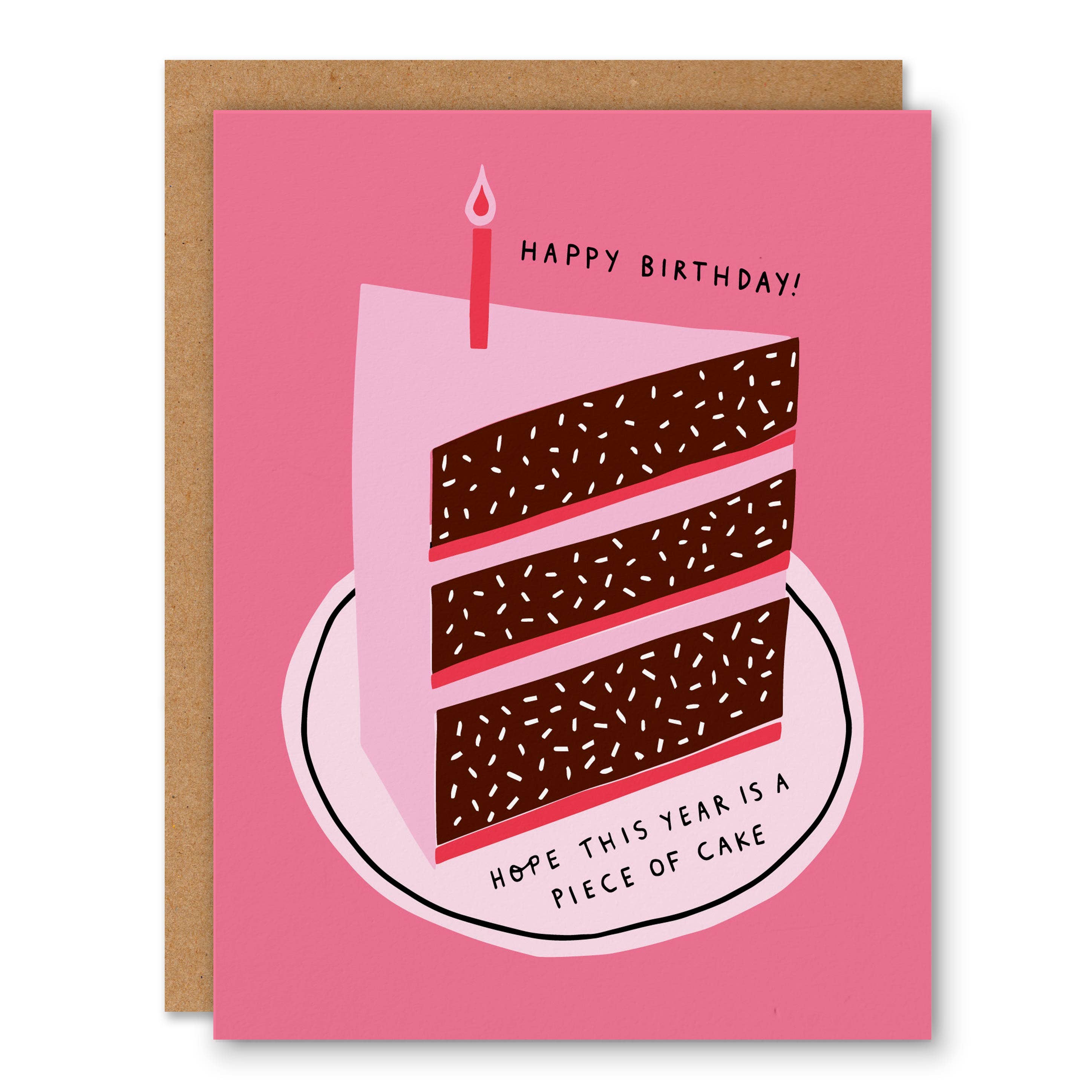Recycled paper collage of a homemade angel sponge cake slice printed on an FSC approved 350gsm card complete with brown ribbed recycled paper envelope. card 14.8 x 14.8 cm envelope 15.5 x 15.5 cm Card is blank inside. All cards arrive 'nude' to avoid excess waste.