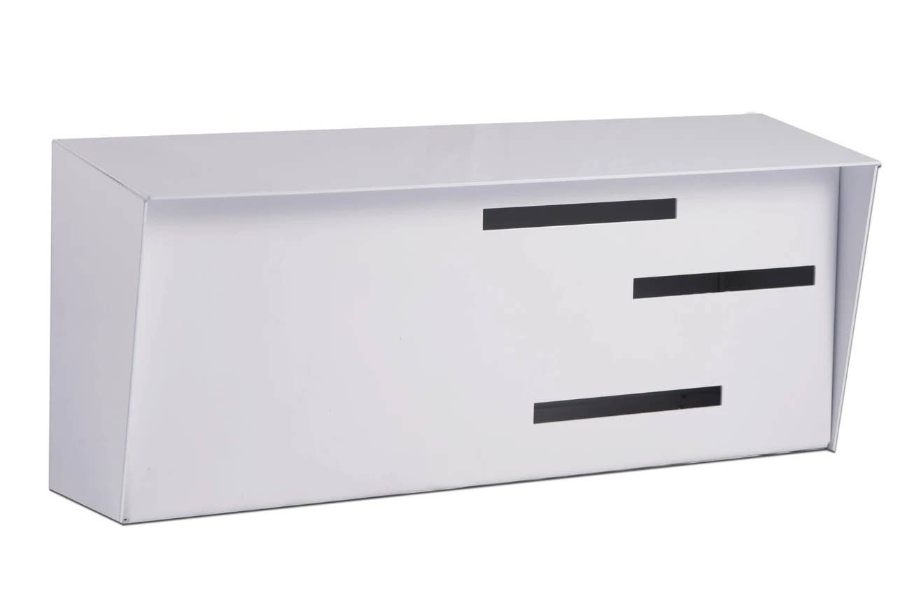 Modern Mailbox | Mid Century Modern Mailbox - Stainless Steel/White Our modern mailboxes are handmade in the USA out of heavy-duty 16 gauge stainless steel and finished with a durable, weather resistant powder coating. Looking for the next family heirloom, our modern mailbox is built to last the test of time. Wall mounted for easy installation and featuring a top opening lid for convenience, our Mid-Century inspired mailboxes come in two versions: our standard non-locking modern mailbox or locking modern mailbox for those looking for the perfect combination of design and security.Â