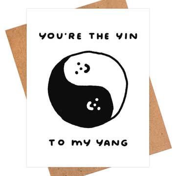 For the one who completes you — this Yin to My Yang card is a minimalist nod to balance, connection, and harmony. Featuring a hand-drawn yin yang illustration and simple black typography on natural textured stock, this design perfectly captures the calm, centered energy of true love and partnership. Whether you’re celebrating Valentine’s Day, an anniversary, or just everyday love, this card is a timeless choice. Its gender-neutral style and heartfelt simplicity make it a versatile favorite among couples who appreciate understated design and meaningful sentiment. ✔ A2 size (4.25" x 5.5") ✔ Blank inside for your personal message ✔ Digitally printed on premium textured stock ✔ Paired with a 100% recycled kraft envelope ✔ Packaged in a plastic-free, biodegradable clear sleeve ✔ Designed & printed in Portland, Oregon, USA ✨ Perfect for Valentine’s Day, wedding, and anniversary assortments. The black-and-white palette and organic hand-drawn feel fit seamlessly into modern, coastal, or minimalist boutiques. Retailers love its year-round appeal and thoughtful, unisex design. 🖤 Balanced, modern, and heartfelt: This card is ideal for couples who complement each other in every way — the grounded to the wild, the calm to the chaos. A perfect pick for love stories that feel balanced, imperfect, and real. 🌿 Sustainably made: Printed on FSC-certified paper using vegetable-based inks, paired with a recycled kraft envelope, and packaged in a biodegradable sleeve. Thoughtful design that reflects both love and respect for the planet. 💧 Giving back: $2 from every wholesale order is donated to the Surfrider Foundation to help protect oceans and coastlines — love that extends beyond the card. 📦 Ships from a woman-owned brand focused on thoughtful, sustainable design. Each card is printed and packed with care in our Portland, Oregon studio, ready for easy display in gift shops, boutiques, and lifestyle stores. 💌 Why retailers love it: Bestselling minimalist Valentine’s and anniversary card Gender-neutral, hand-drawn design with universal appeal Works across love, wedding, and everyday connection categories Sustainable and USA-made with premium tactile quality Pairs beautifully with “You’re My Human” and “To My Person” cards Copyright © 2025 Daydream Prints.