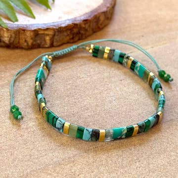Olive Green Bronze Bar Bracelet