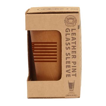 Wholesale Retail Ready Pick-A-Logo Leather Pint Glass Sleeve and Box