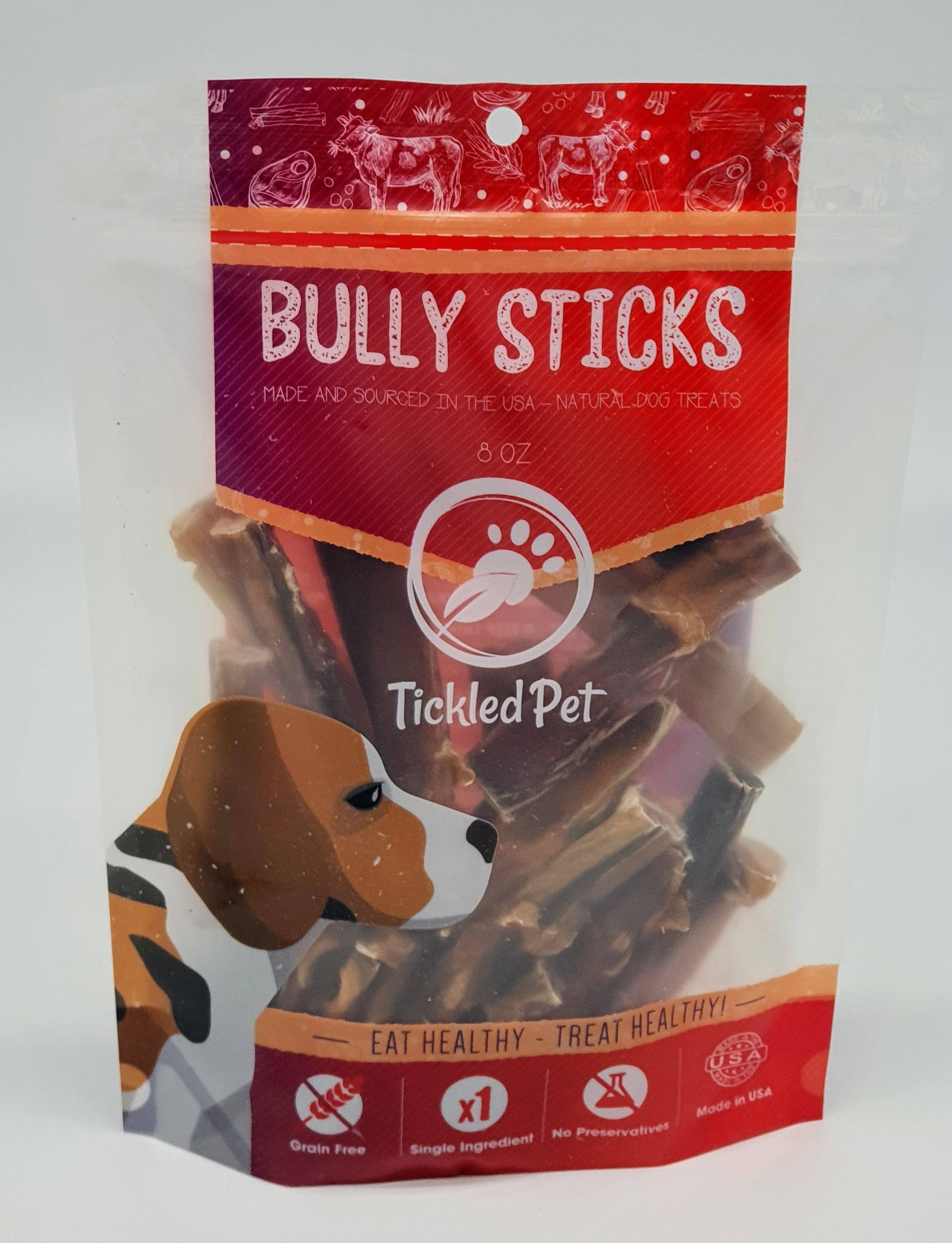 6" odorless Bully Sticks are a robust and long lasting chew for small to medium sized dogs. Bully Sticks are packed with protein and are fully digestible. Live Pawsitively Bully sticks provide entertainment for your dog while helping to promote healthy teeth and gums. Our Bully sticks are single ingredient chews that have no additives, chemicals or preservatives. Bully sticks our great for dogs from Puppy to Adult and help keep boredom at bay while chewing a tasty chew * Supervise all dogs when given chews to prevent choking Ingredients; 100% Beef Pizzle Key Benefits: Single ingredient dog chew Loaded with Flavor that your dog will love 100% digestible Aids in dental health to remove plaque build up Long lasting chew
