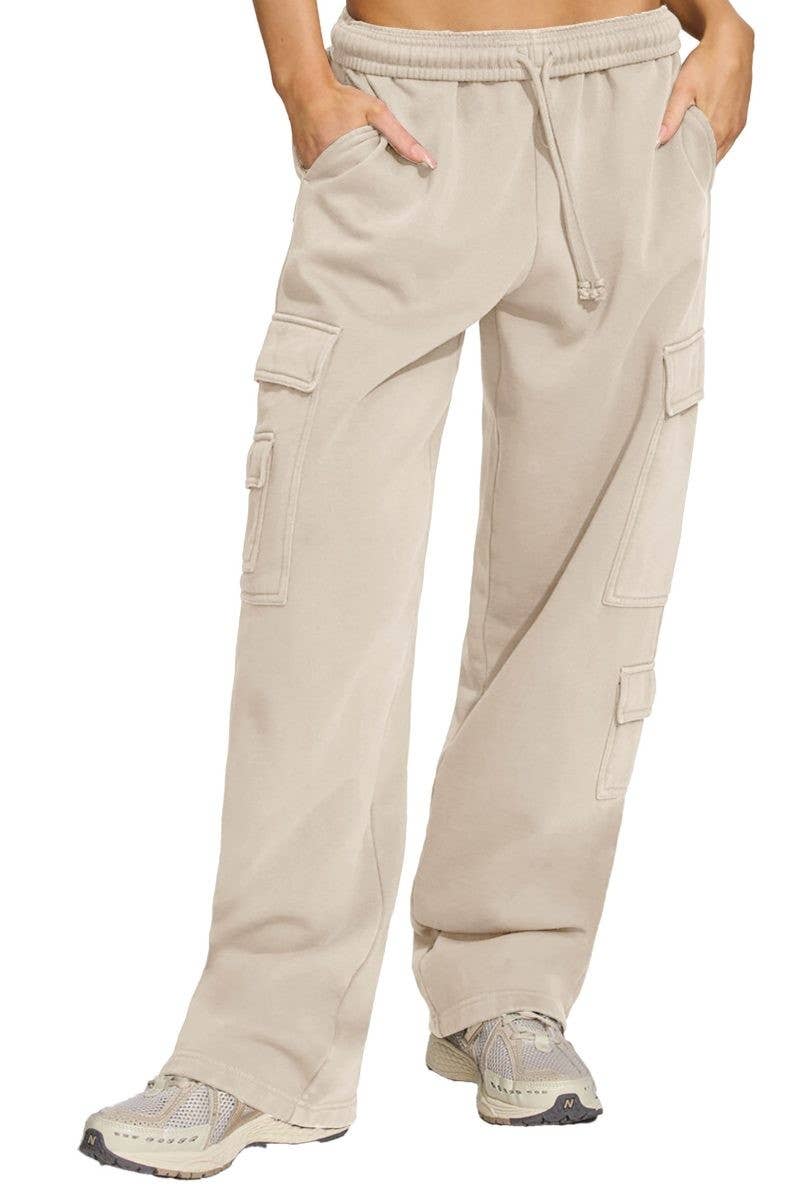 - Wide Elastic Waist Comfy Jogger Pants - Side Pockets - Activewear & Athleisure wear - High Waist (Model height: 5'9", wearing a Small, 2-2-2- Size Ratio) (Model is wearing a Small, 2-2-2 Size Ratio)
