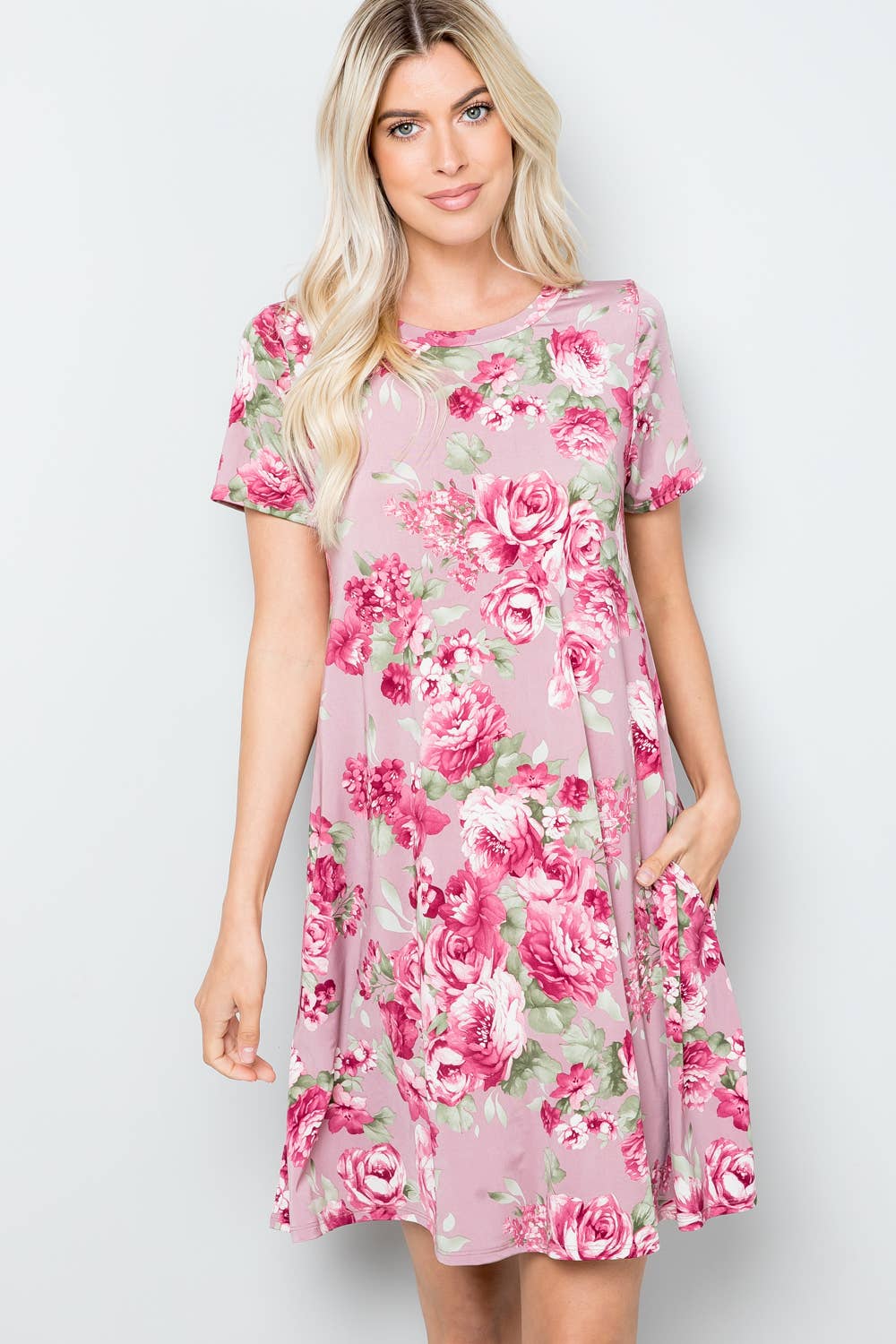 Simplicity at its finest. Here is our incredible brushed knit fabric in a simple scoop swing dress. 96% polyester 4% spandex. Machine wash cold with like colors, gentle cycle, do not bleach, tumble dry low or hang or line dry, cool iron if needed.