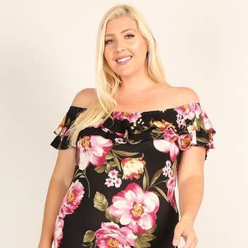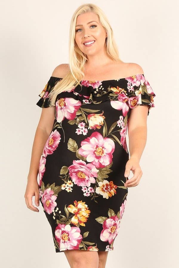 Plus Dark Floral Brushed Swing Dress