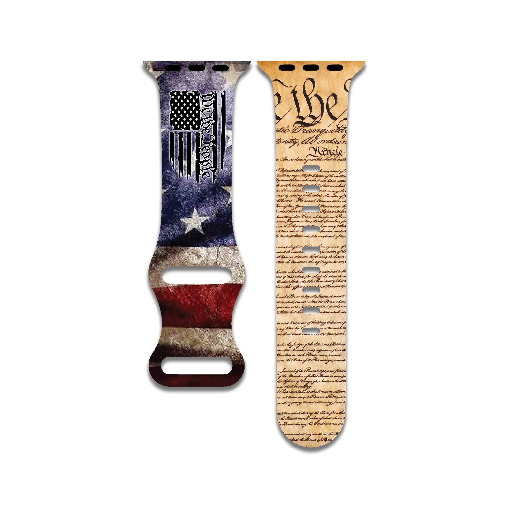 American Flag, Red White And Blue Watch Band Compatible with Apple Watch Series 1-9, 38mm, 40mm, 41mm, 42mm, 44mm, 45mm, 49mm, SE2, Ultra 2 Say hello to our thoughtfully designed Apple Watch bands that effortlessly combine style and practicality. Made in the USA. Universal Compatibility: Our bands suit all Apple Watch models, from the latest Series to earlier editions, offering a personalized touch to your tech. Unique Designs: Explore a diverse array of prints, from timeless classics to bold statements. Embrace your unique style for any occasion. Premium Craftsmanship: Our watch bands blend quality materials for durability and comfort. They offer a snug fit, combining style and functionality to endure over time. Key Features: Easy to install and remove Adjustable for a custom fit Durable materials for long-lasting wear Fashion-forward designs to suit any taste Elevate your Apple Watch experience with a touch of personality Order yours now and make a statement that lasts
