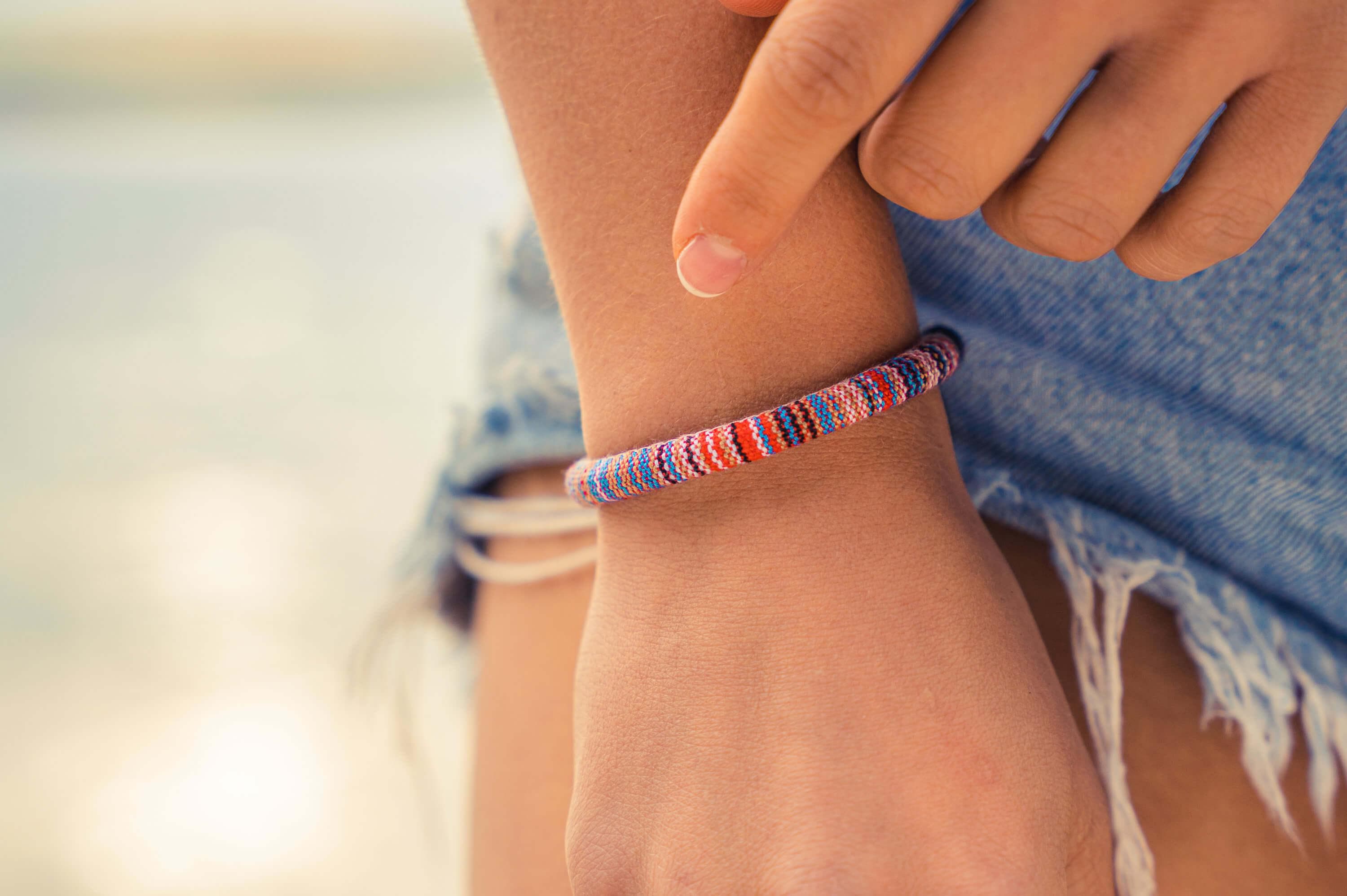 Our Made by Nami surfer bracelets in boho style are 100% waterproof and handcrafted from sustainable cotton. We pay special attention to high quality during production, which makes our bracelets robust and durable. Wear them while surfing, snowboarding, and showering. 100% Waterproof High wearing comfort due to 100% sustainable cotton Unisex m/f/x & children Adjustable size with sliding knots
