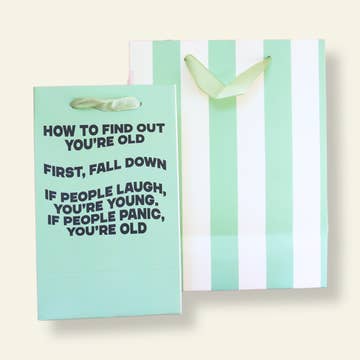 We turned one of our best selling cards into a birthday gift bag! Holy Shit you're old! • Matte black 8" x 10" x 4" with gold foil stamping • Sturdy weight with rope handles • Lovingly designed in Chicago, IL, USA See our other foil-stamped gift bags here: https://www.faire.com/brand/b_2e7e14e5?filters=category%3Apaper_novelty%7Cgift_wrapping%7Cgift_bags_boxes Check out the Holy Shit You're Old greeting card: https://www.faire.com/product/p_6f81bn33?bQ=holy%20old&refB=1 Please share your Google review! https://www.google.com/maps/place/Steel+Petal+Press