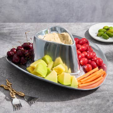 Happy Hearts make it easy to show someone your love! They're available in everyone's favorite colors and patterns! Fill 'em with yummy candies, nuts, snacks, crackers, chips and dips...or use them as colorful catchalls for jewelry and other small items. A shiny silver Heart Spoon comes with every dish. Happy Hearts nest perfectly with our smaller 4" Tiny Hearts for double the love! Handcrafted of food-safe polished aluminum. Size: 5.25"; Spoon-4" A great idea for a Valentine’s Day gift!