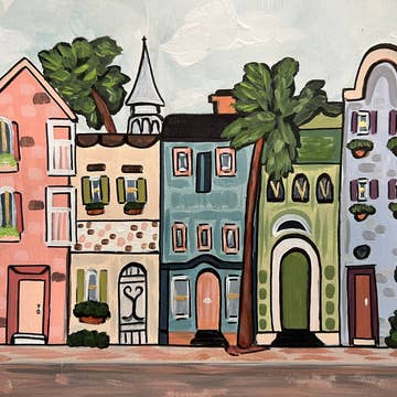 This is a print of an original gouache painting of Toronto's Cabbagetown neighbourhood. Print size: 12" x 16" Displayed in 12x16 inch frame, there is a white border around the artwork. Professionally printed heavy cover stock.