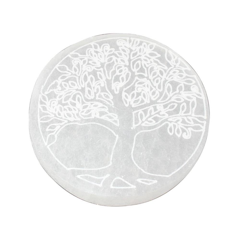 "Moon Beams" Engraved Round Selenite Charging Disc