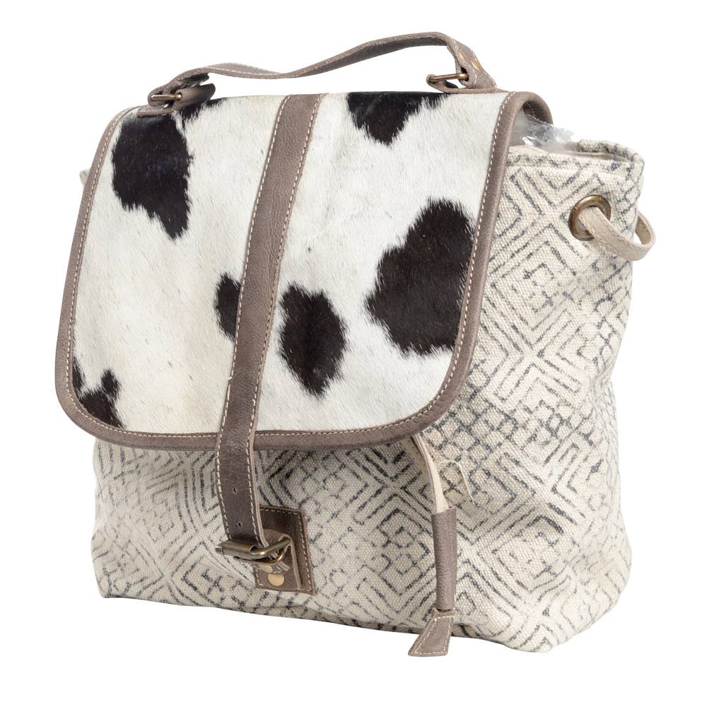 Small Canvas Print & Cowhide Trim Backpack