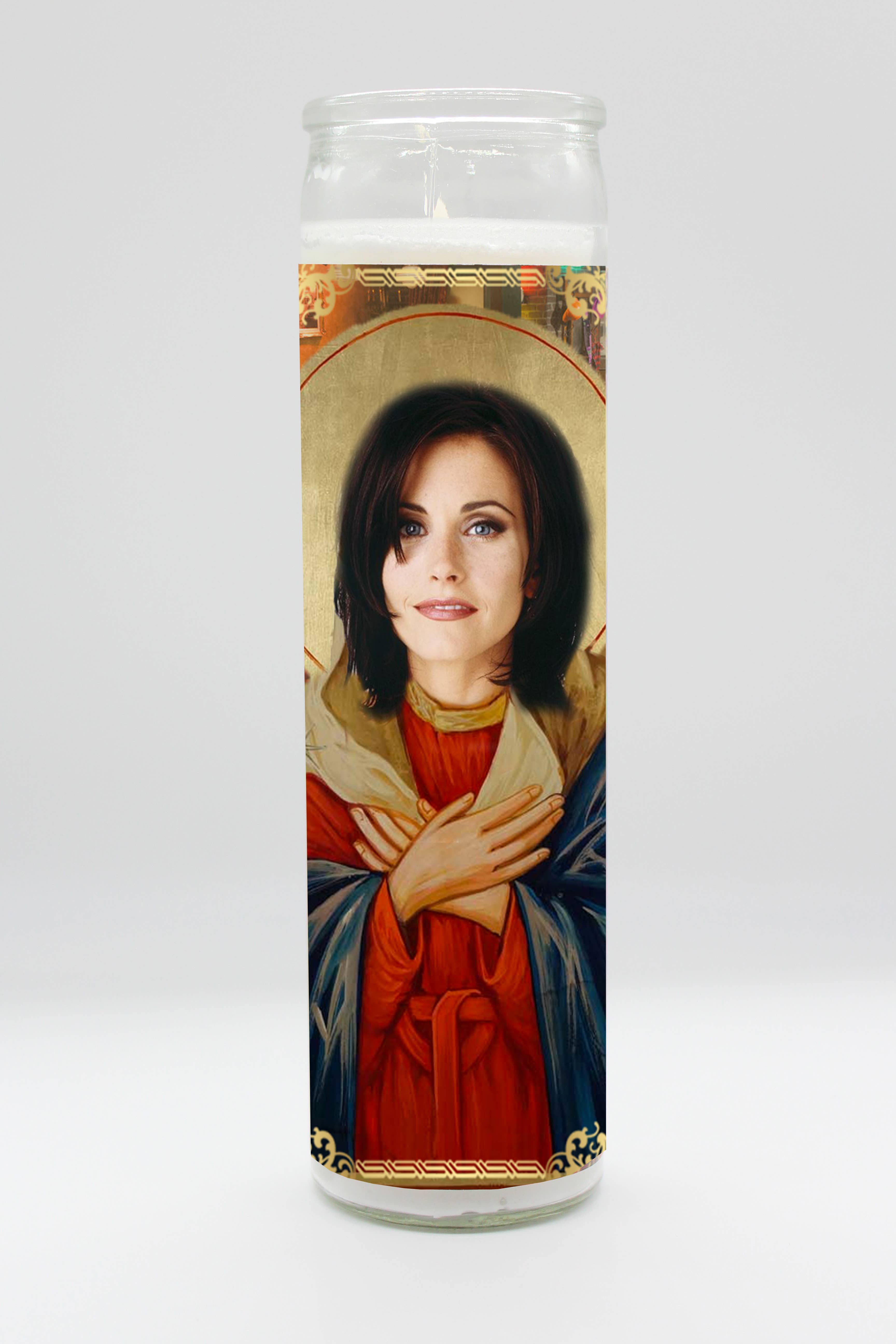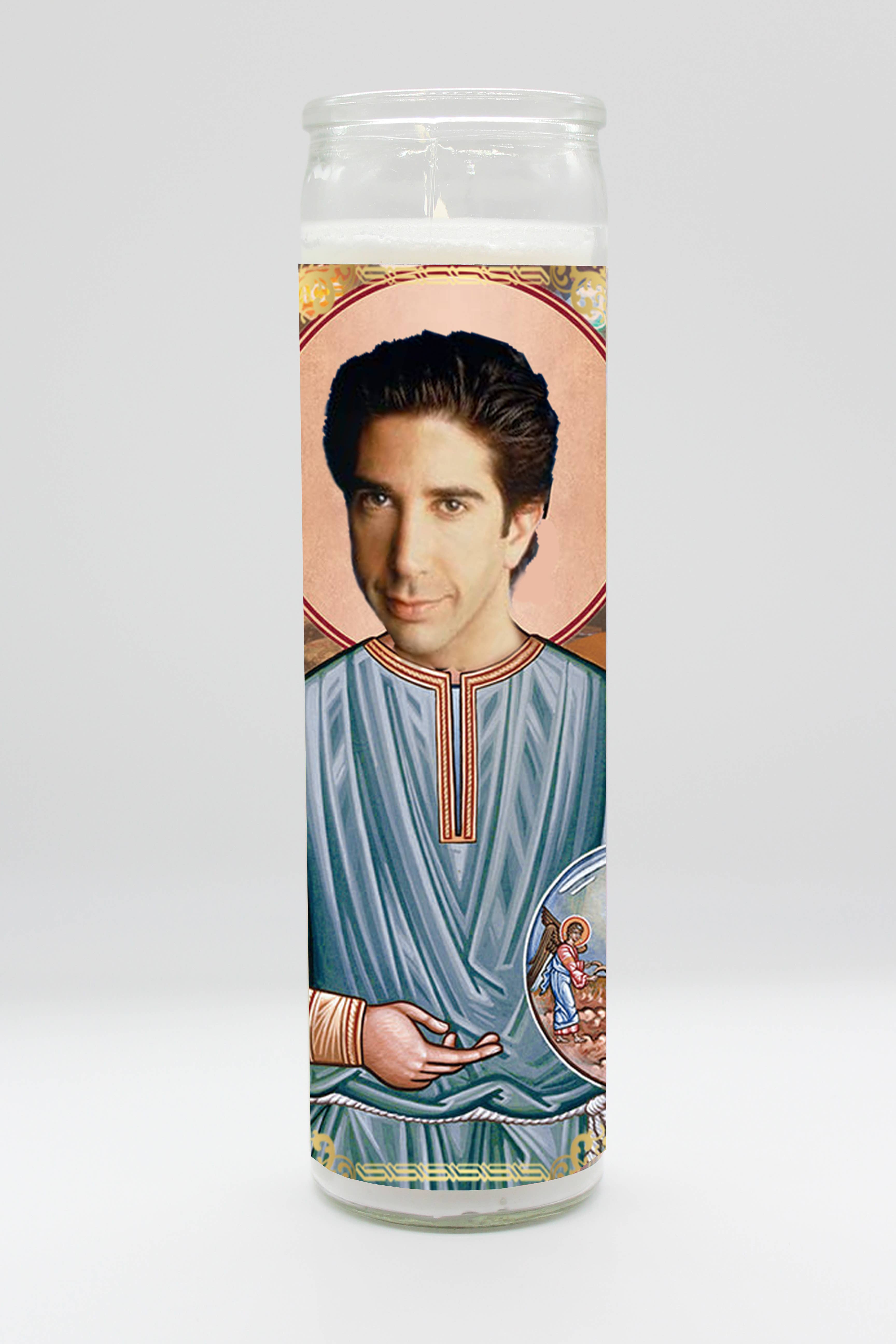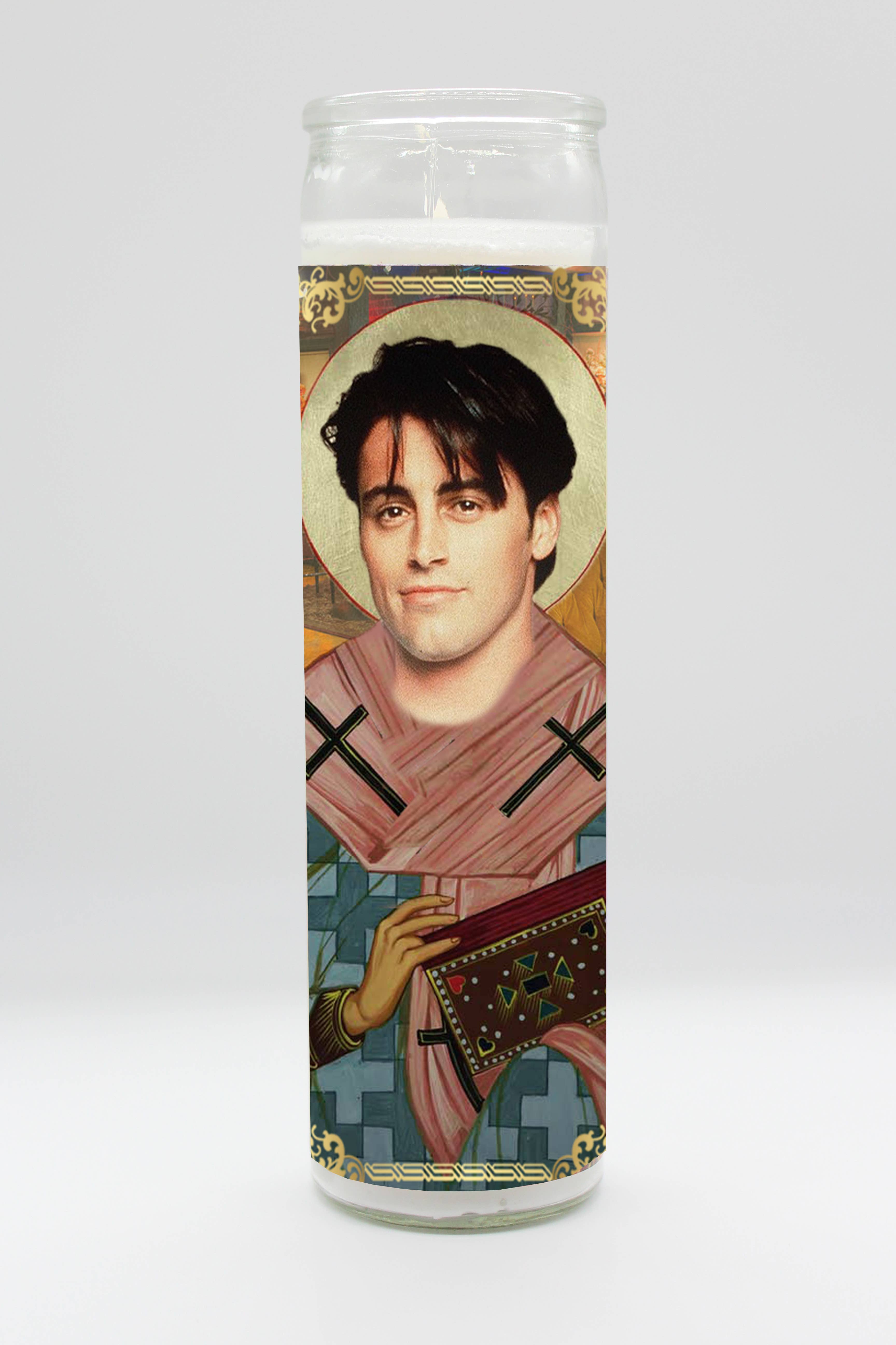 Tall white candle, hand poured in Mexico, design and assembled in the USA. Candle is unscented. Chandler Matthew Perry inspired parody art prayer candle.