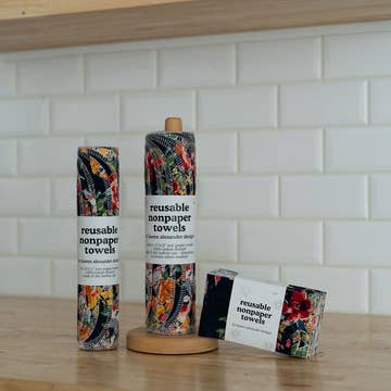 Reusable Paper Towels are a great addition to your kitchen. They are made with 100% cotton flannel and serged on the edge to prevent fraying. Colorful, bold, and fun fabrics make using them fun! Store them folded in a basket on your countertop, or kitchen drawer for easy access to clean up spills and more. You can also roll them onto a paper towel dispenser for grab and go access. Once used just put with other dirty laundry or in a designated bag for washing. Size: 10" x 12" Quantity: 10 reusable 1-ply towels For best results wash before first use. Reusable Paper Towels can be machine washed and dryed with household towels . Towels will become more absorbent the more you use and wash them. Using bleach will fade the designs on the fabric. Comes in recycled and compostable packaging. Handmade in Sacramento, California by Miche Niche.