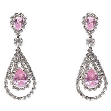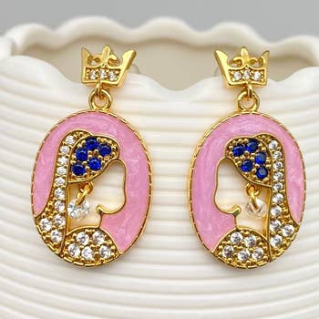 Chanteur - Wholesale Dangle Earrings - Pink Crown with Multi-Colored Crystals Leverback Earrings0
