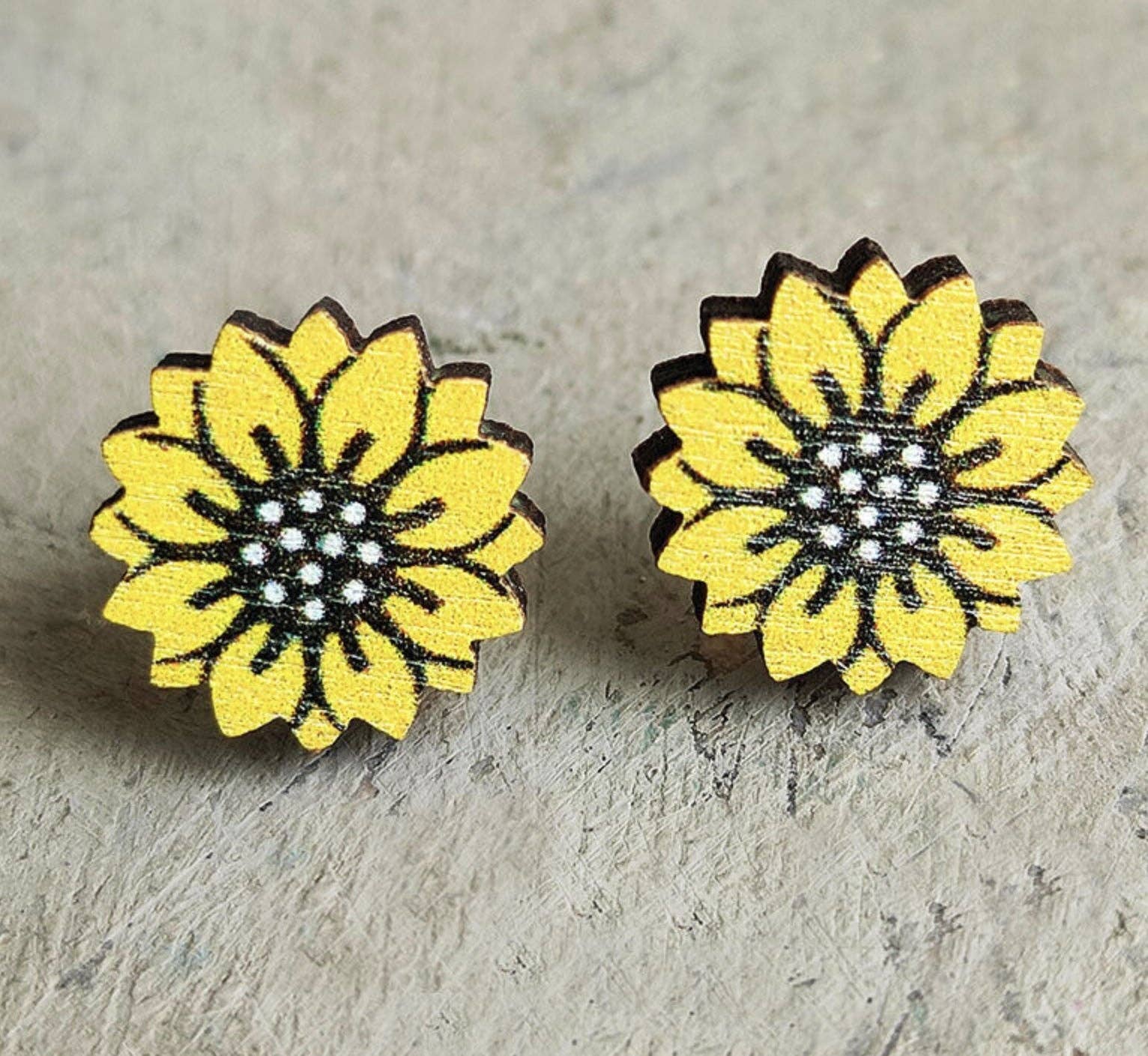 Bold sunflower earrings. All earrings are made with hypo-allergenic, nickel-free titanium posts.