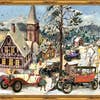 Victorian advent calendar “Vintage Car Rally with Glimmer” This beautifully designed Victorian advent calendar is a MUST for any nostalgic fan. But with great vehicles, it will also make every classic car enthusiast very happy. The vintage car rally goes through an idyllic, snow-covered village and gets its Christmas sparkle thanks to the glitter applied. Let yourself be enchanted, open a new door every day during Advent and be surprised what's behind it. This is how the advent calendar changes over the Advent season, as the pictures behind the doors complement the front picture and thus create small stories. Why don't you go with me! - with glowing back images - Size approx. 26.5 x 35.5 cm - with mica