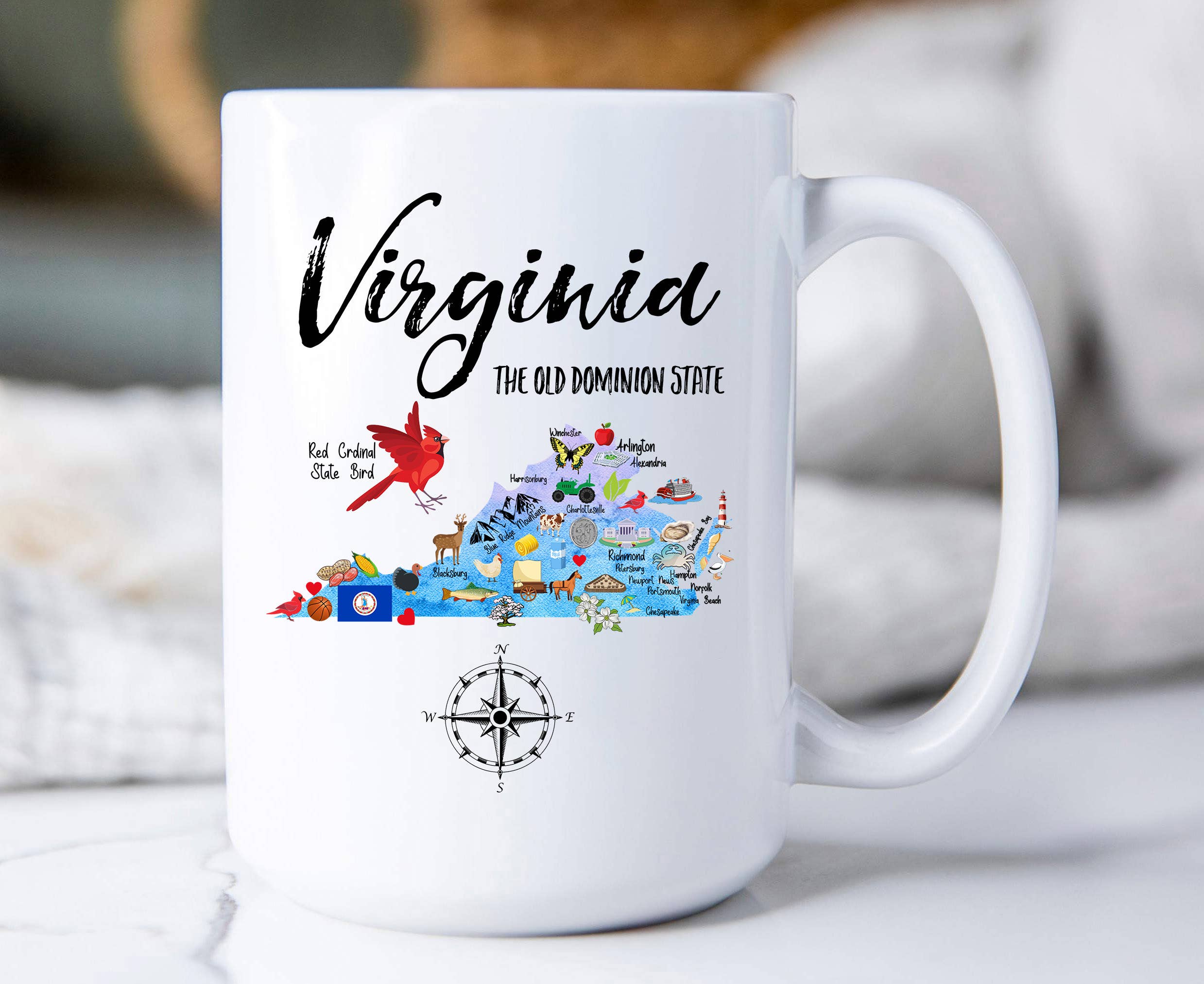 Virginia State Map Souvenir 12 oz Canvas Tote Bag