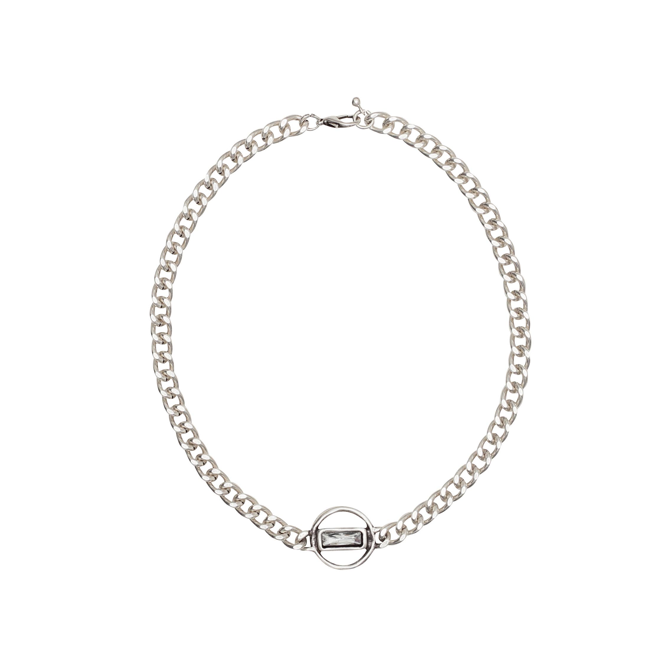 Silver plated chain necklace. 30" in length with a 2" extender and has a silver plated circle that is perfect to pair with many of our magnetic or claw clasp pendants.