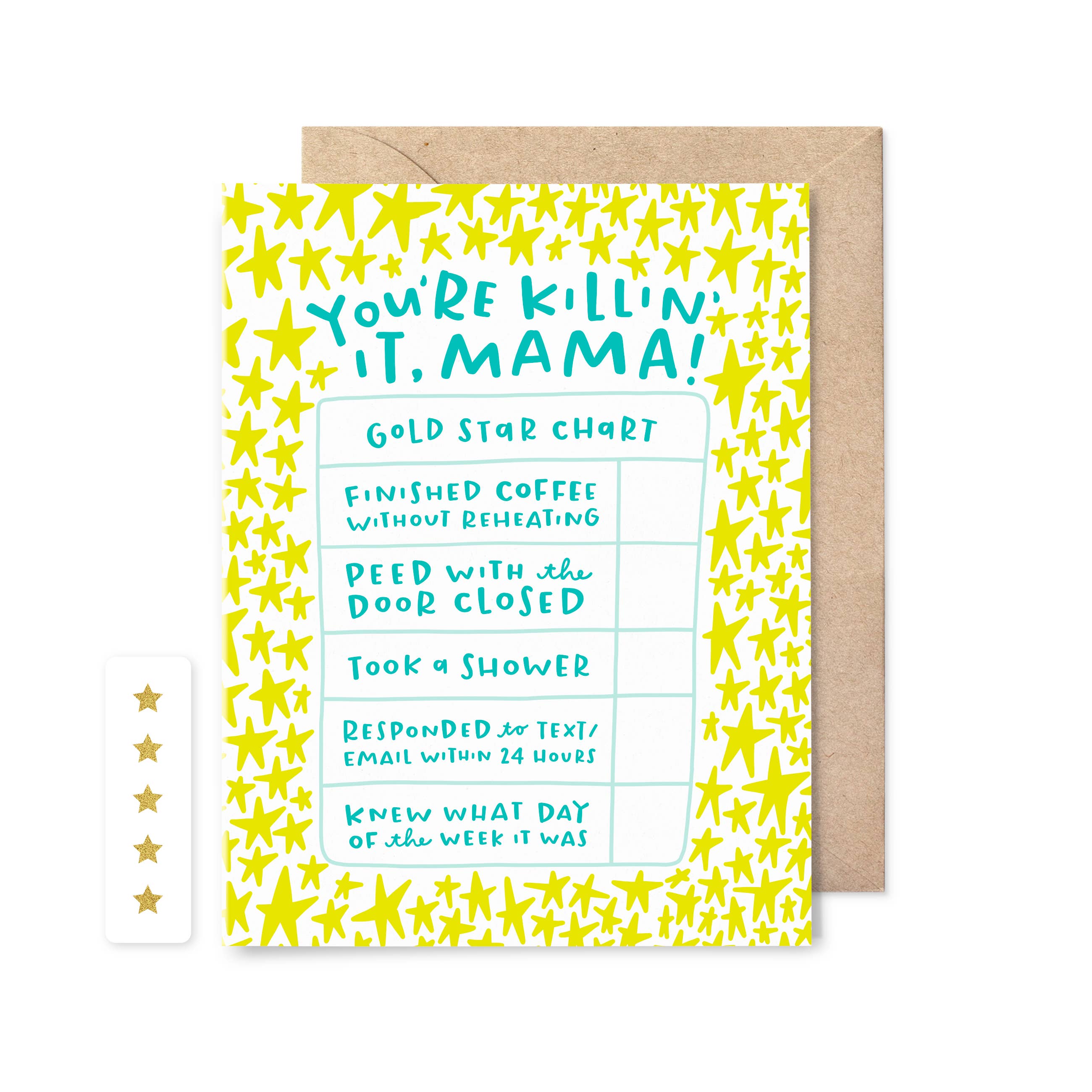 “You are doing a great job, mama!” Perfect for encouraging a mom in the thick of it. Card size is A2 (4.25"x5.5") 100% recycled card stock Blank inside Letterpress printed in Chico, California
