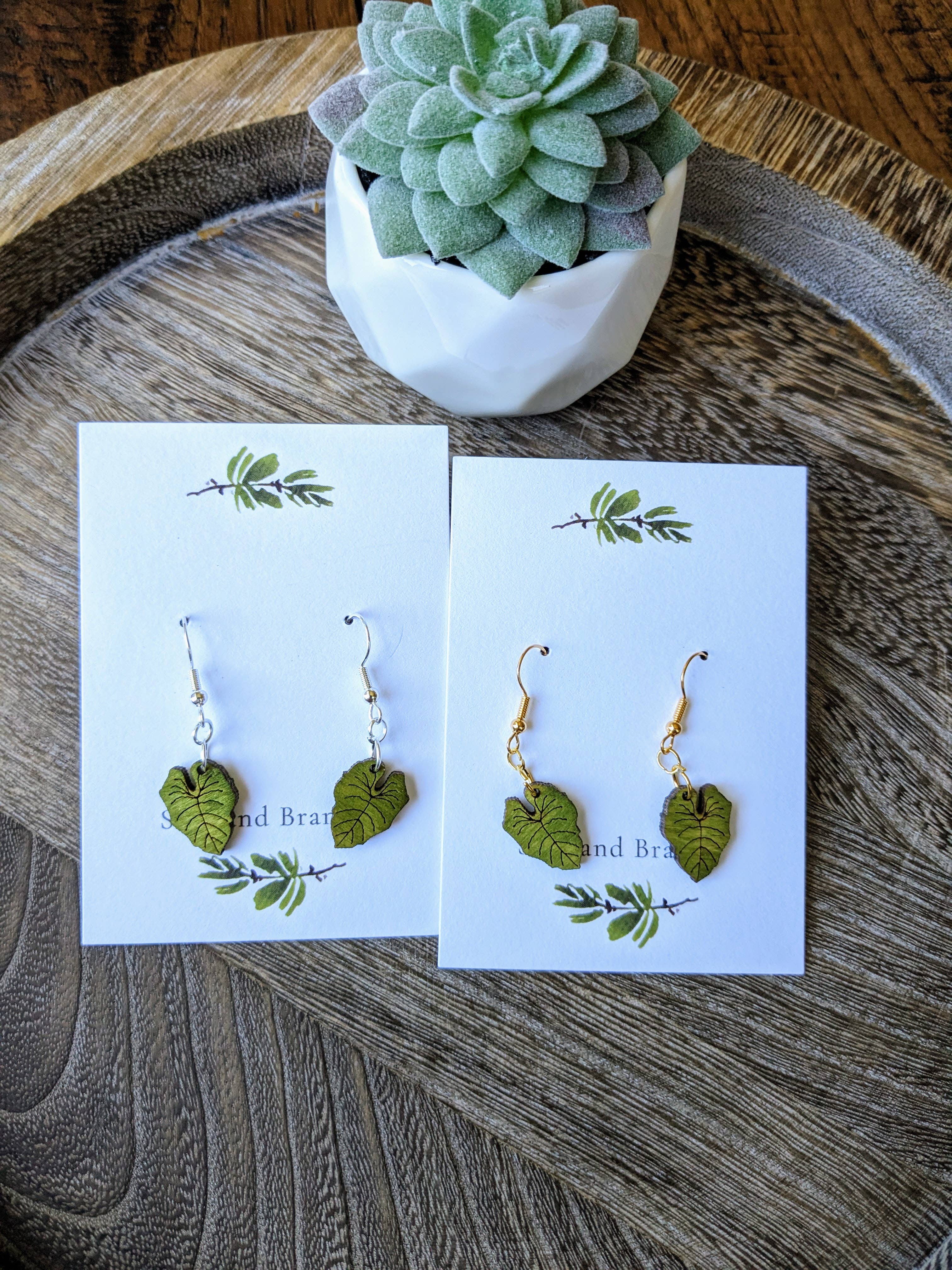 Beautiful earrings, wood is crafted very nicely. The white paint on some of the plant earrings is messy and I’ll have to fix it before selling them.