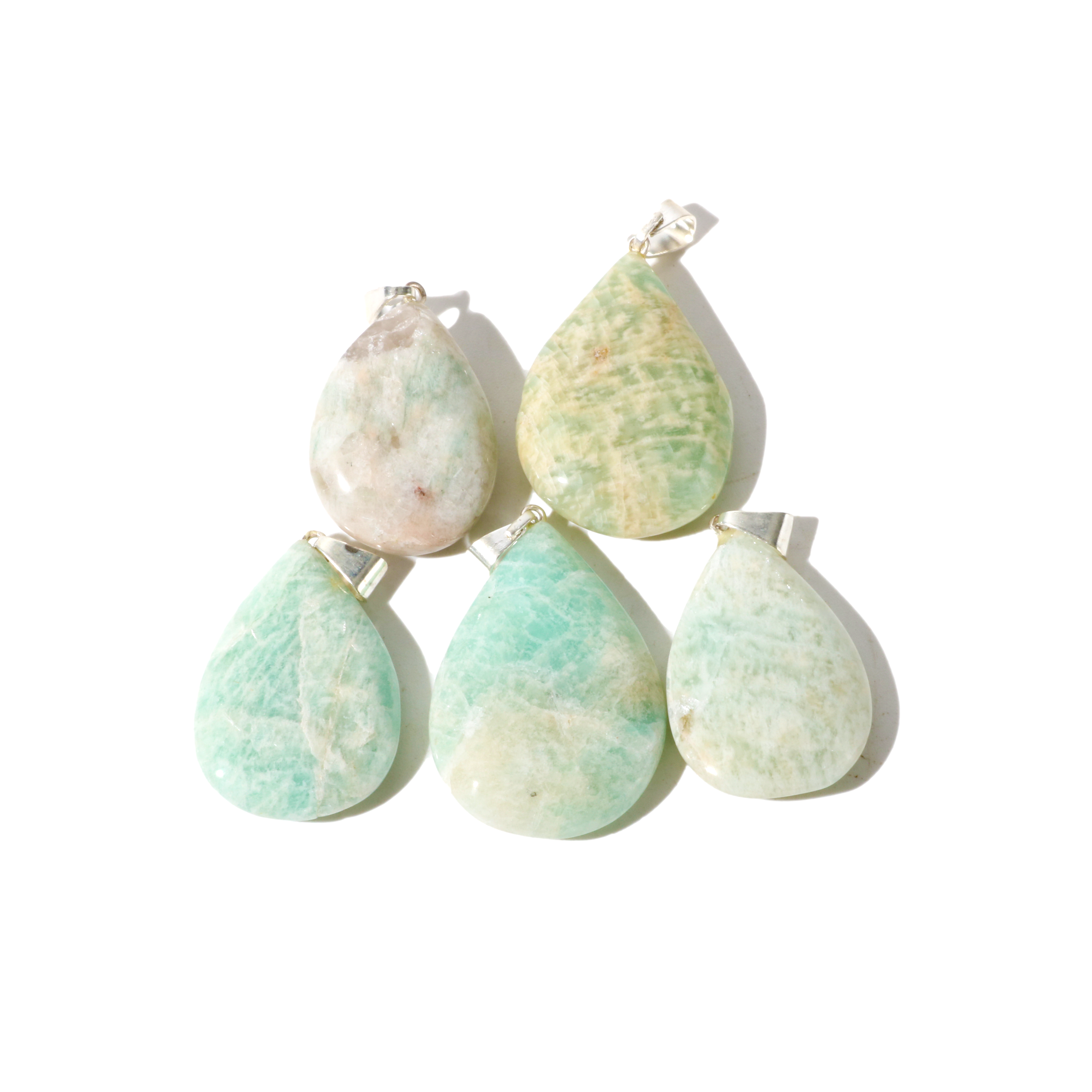 Agate Blue Tumbled Pendants - 5 Pack Subtle yet charming, These tumbled blue agate gemstones come in a bag of five and are adorned with a silver metal bail. With these pendants, you can create a stylish look for your jewellery. Blue agate varies from very light blue to dark blue, with gray and white tones are visible throughout the stone, natural banding is present on multiple pieces wrapping around the pendant with a creamy milk white colour. Stones are mostly opaque, some pieces contain a fair amount of translucency but nothing is entirely clear.
