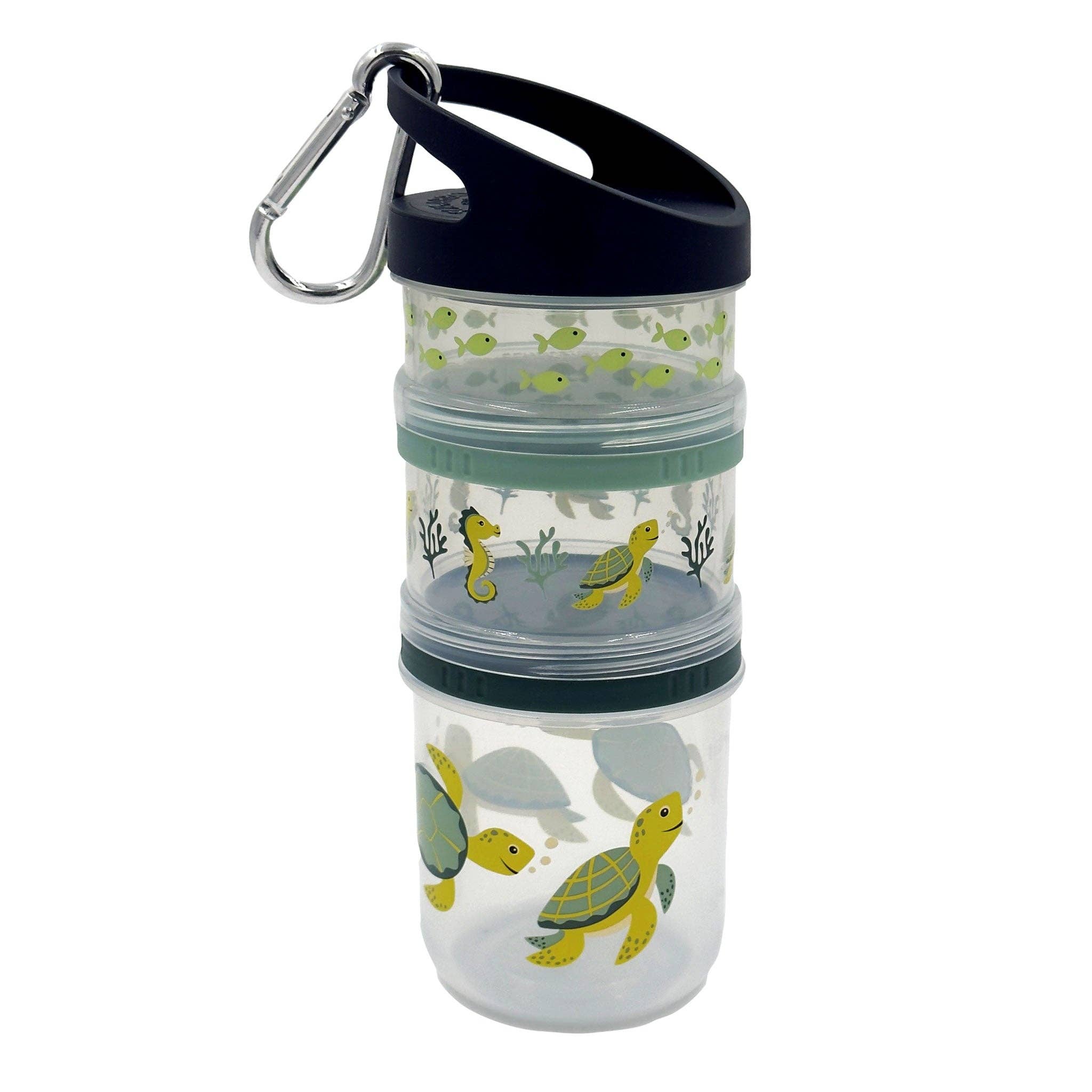 Leak-proof, stackable snack containers! Save space and snack-packing energy with pods stacking containers. Stack, snack, and mix and match in five crowd-pleasing colors. • BPA, Phthalate, & Lead free • Includes three stackable containers and three leak-proof inserts • Capacity: each container holds up to 4 fluid oz or 1/2 cup dry contents • Dimensions: 5 in / 13 cm tallThree stackable containers and three leak-proof inserts.
