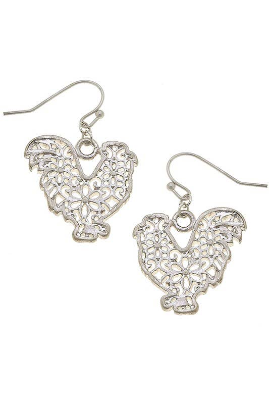 We just had to! Our Happy Pig Earring features a solid brass, beautifully detailed pig on a pretty floral filigree, making the happy pig look like he's walking through a field of wildflowers. Always mixed metal, choose antique brass or antique silver pigs. Sterling wires. 1 1/2" x 1".