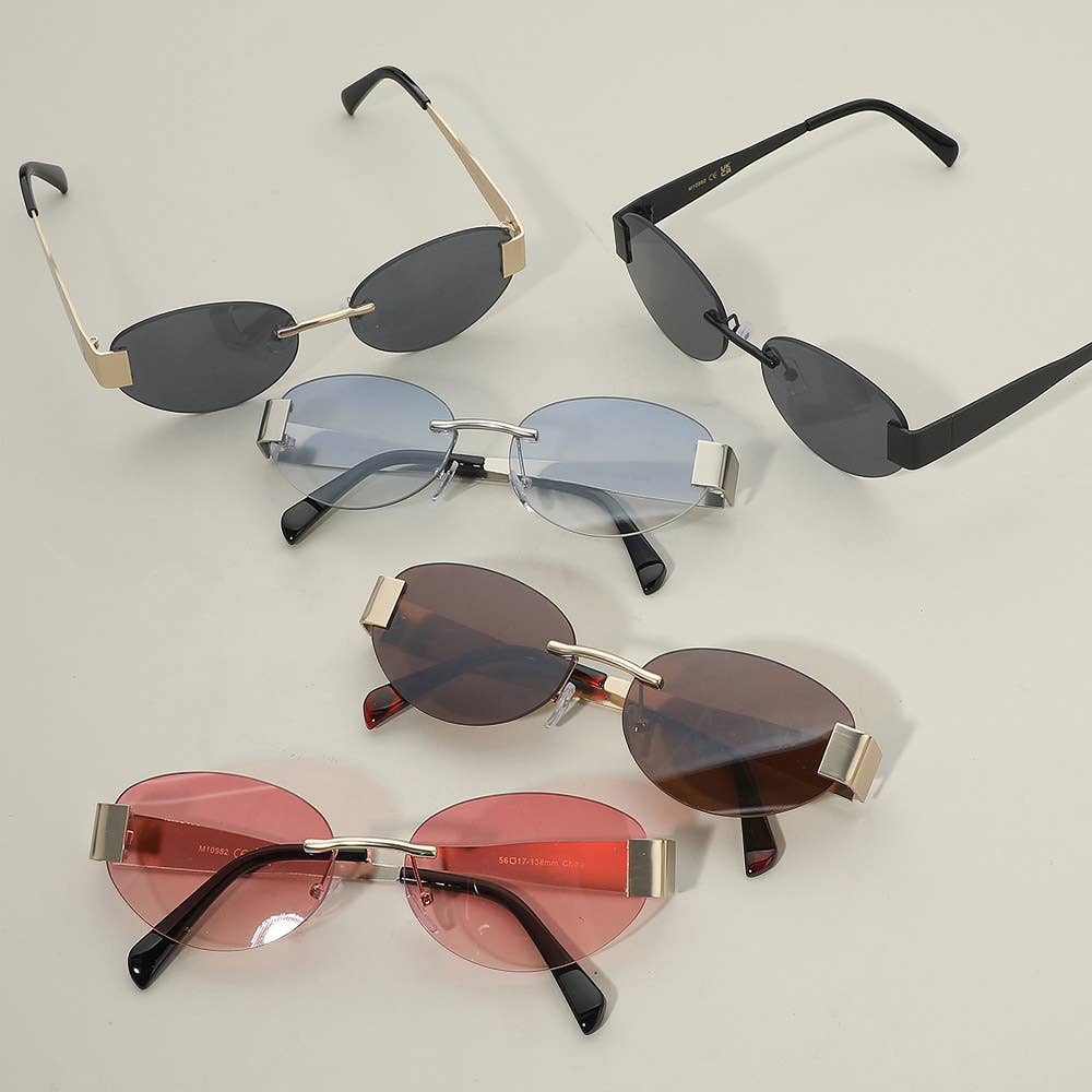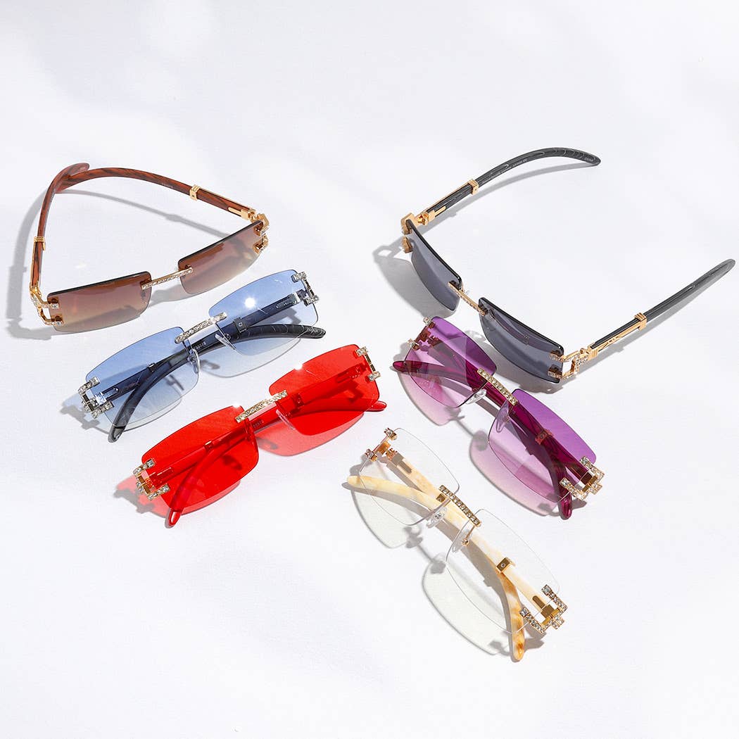 Frameless Square Lenses Rhinestone Deco Sunglasses - Frameless Sunglass with Rhinestone Deco - Allure Genesis Sunglasses - 12 ASSORTED COLORS - UV400 Protection against Ultraviolet Rays UVA&UVB ** Size: Approx. 5.75" x 2" ** Indulge in the epitome of eye protection and style with these high-quality sunglasses, meticulously crafted for the discerning fashion enthusiast. Engineered with advanced UV protection, they shield your eyes from harmful rays while elevating your look. The sleek design seamlessly blends fashion and functionality, ensuring you make a bold statement wherever you go. The premium materials guarantee durability and comfort, making them an essential accessory for sunny days. Embrace timeless elegance with these sunglasses that not only prioritize your eye health but also exude unparalleled style, a perfect fusion of sophistication, and superior sun defense.