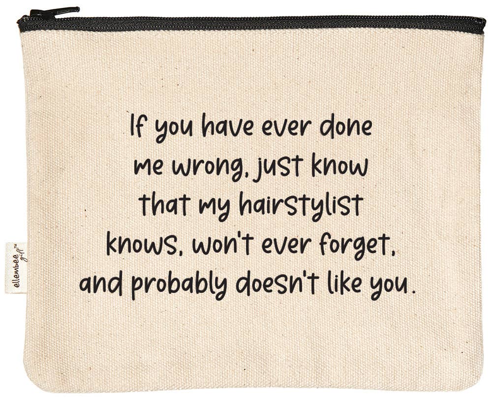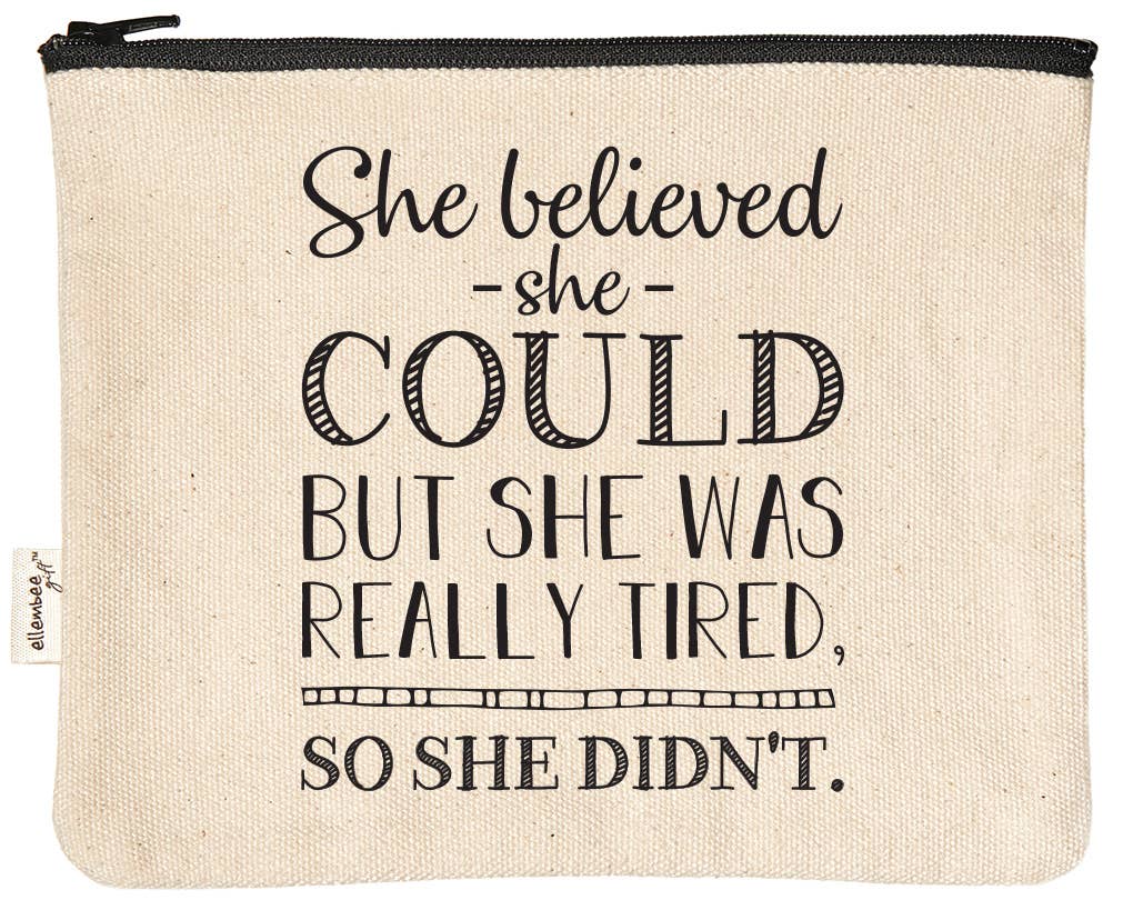 Our fun yet functional zipper pouches make the perfect gift! They're made of 100% durable cotton canvas, with a black YKK zipper. At 7.5" wide by 6" tall, they're the perfect size to throw in your bag! They're the perfect size for makeup, nail polish, coupons, spending money, receipts, office supplies, and so much more! The bag is sewn in China, and printed by hand in our Highland, MI warehouse, using an environmentally friendly, water-based ink. KEYWORDS: My toxic trait is telling my dog he's been a good boy after he's been a real asshole all day, zipper pouch, makeup bag, printed in usa, travel bag, travel size, sustainable, trending gift ideas, trendy, pouches, mask pouch, eco friendly, 100% cotton, ellenbee, ellembee, lnb, clever gifts for clever people, female made, funny busy mom gifts, funny gifts for friends, gifts for bff, funny gifts, Made in China, Printed in USA