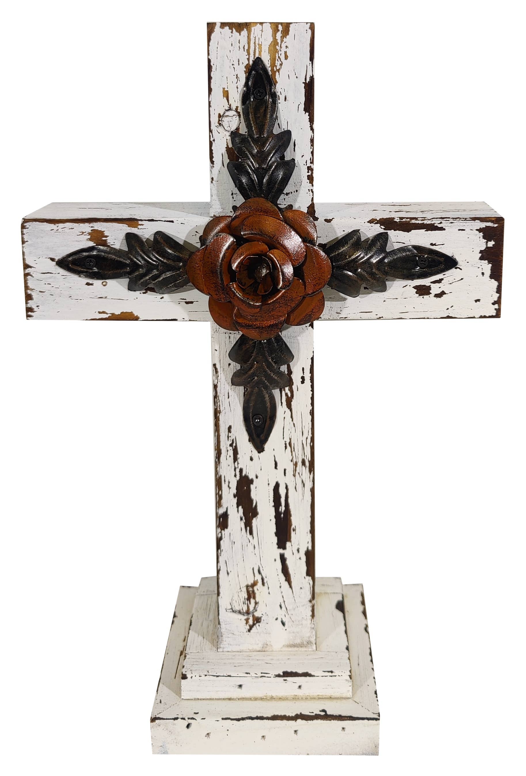 Pottery Cross With Flower Bouquet - Rustic Finish