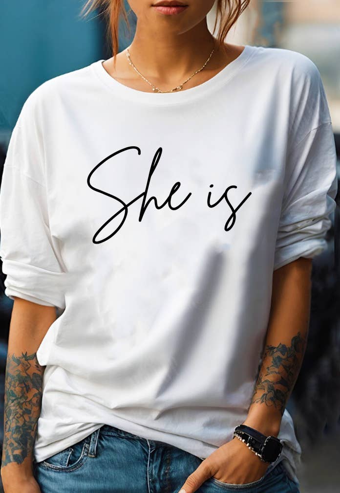 Professionally screen printed on our classic fitted crewneck; dusty sage t-shirt, grey ink. 100% Cotton Available in Women's sizes S, M, L, XL, XXL. We recommend washing in cold water, on the delicate cycle. Tumble dry low heat. Measurements S: 26.25" long by 17" wide M: 26.75" long by 18" wide L: 27.25" long by 19" wide XL: 28" long by 20" wide XXL: 28.5" long by 21" wide Model is 5'4 and is wearing a size S
