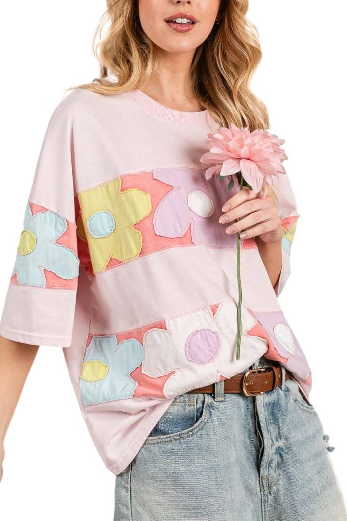 /Size XL/ Short Sleeve Ribbon Pattern Knit Top