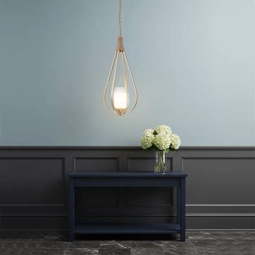 12"W Bronze-Finish Metal and Wood Hanging Pendant Light