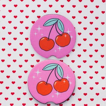 Soft flexible polyester car coasters with a grippy rubber bottom! Super cute addition to your ride, and they absorb moisture!