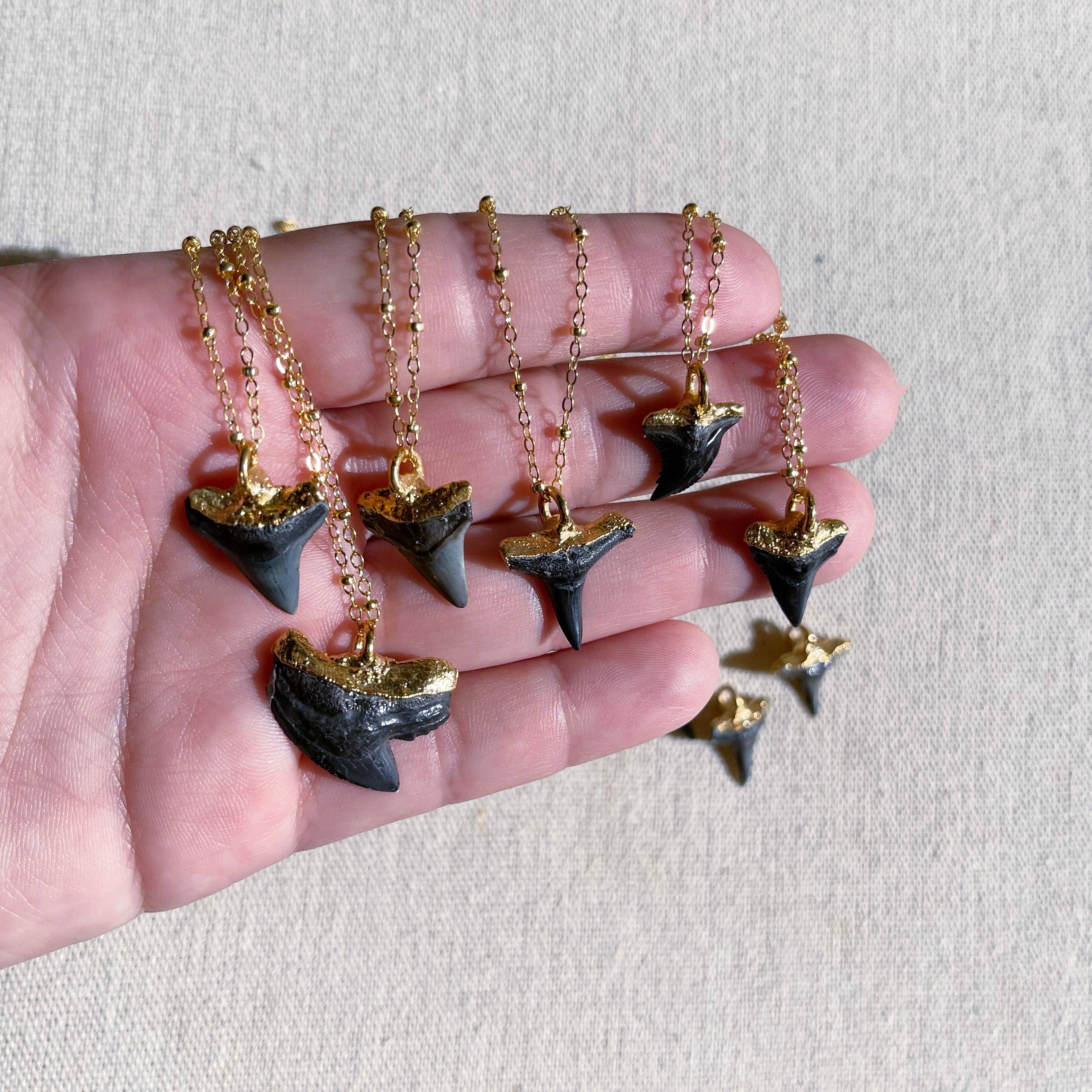 24kt Gold Dipped Fossilized Shark Teeth Jewelry Necklace