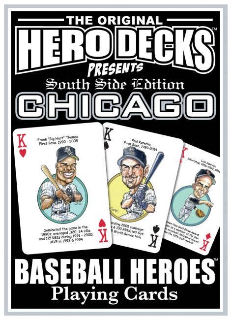 The Chicago North-side Hero Deck playing cards for Chicago Cubs fans feature fifty-two of the greatest players by position and era in Chicago Cubs baseball history. Thoughtfully organized by position using baseball numerology, the face of each playing card is colorfully illustrated with a different hero ... this deck is sure to be a HOME RUN with Cubs fans of all ages! Chicago Baseball Heroes includes: Ian Happ (R) Andre Dawson Andy Pafko Anthony Rizzo Ben Zobrist Bill Buckner Bill Hands Bill Madlock Bill Nicholson Billy Williams Bruce Sutter Cap Anson Charley Root Derrek Lee Dexter Fowler Don Kessinger Ernie Banks Ferguson Jenkins Frank Chance Gabby Hartnett Gary Matthews Glenn Beckert Greg Maddux Grover Alexander Hank Sauer
