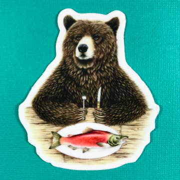 Glacier Grizzly sticker is a reproduction of my original gouache painting of a grizzly bear wading in Lake McDonald in Glacier National Park. He was inspired by my time at Glacier in the summer of 2021 and is my current favorite bear. Premium laminated die cut vinyl sticker with a matte finish. High quality production - it holds up to water very well making it perfect to use on water bottles, lunchboxes, cars, cell phone cases, cargo containers, coffee tumblers, laptops and anywhere else that it might bring you joy! Sticker measurements: 2.75" tall by 4" wide I attempt to ship out all orders as quickly as possible, but ensure that everything is shipped within a maximum of three business days. Thank you for shopping at Little Pine Artistry!