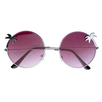 These round sunglasses are perfect for your favorite music festival and your inner boho. Round metal frame sunglasses are perfect for that boho, bohemian fashion look! This hippie style round women sunglasses are accented with palm trees and gradient lenses that make them extremely unique. This item features metal prince hinges; nose piece and a gradient two-tone polycarbonate 100% UV high impact-resistant protected lenses. Make a Statement in these shades! * Lens Width: 57mm * Nose Bridge: 20mm * Lens Height: 57mm * Total Width: 140mm