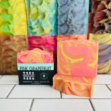 Hand | Face | Body | Vegan | Made with Coconut Milk This tantalizing Grapefruit Delight Bar Soap is a burst of fruity goodness that will transport you to a tropical paradise with every wash! Get ready for a citrus symphony that will awaken your senses and leave your skin feeling refreshed and invigorated. The captivating pink grapefruit essential oil, bursting with vibrant citrus notes that instantly uplift your mood. Close your eyes and imagine the tangy sweetness dancing through the air as you lather up. To pamper your skin even further, we've included cocoa butter, shea butter, and mango butter. These velvety ingredients are like a trio of moisturizing superheroes, hydrating your skin and leaving it supple and radiant. We've sprinkled in a pinch of organic turmeric root powder. Its vibrant orange hue adds a delightful pop to the soap, while its antioxidant properties revitalize your skin, giving it a natural glow.