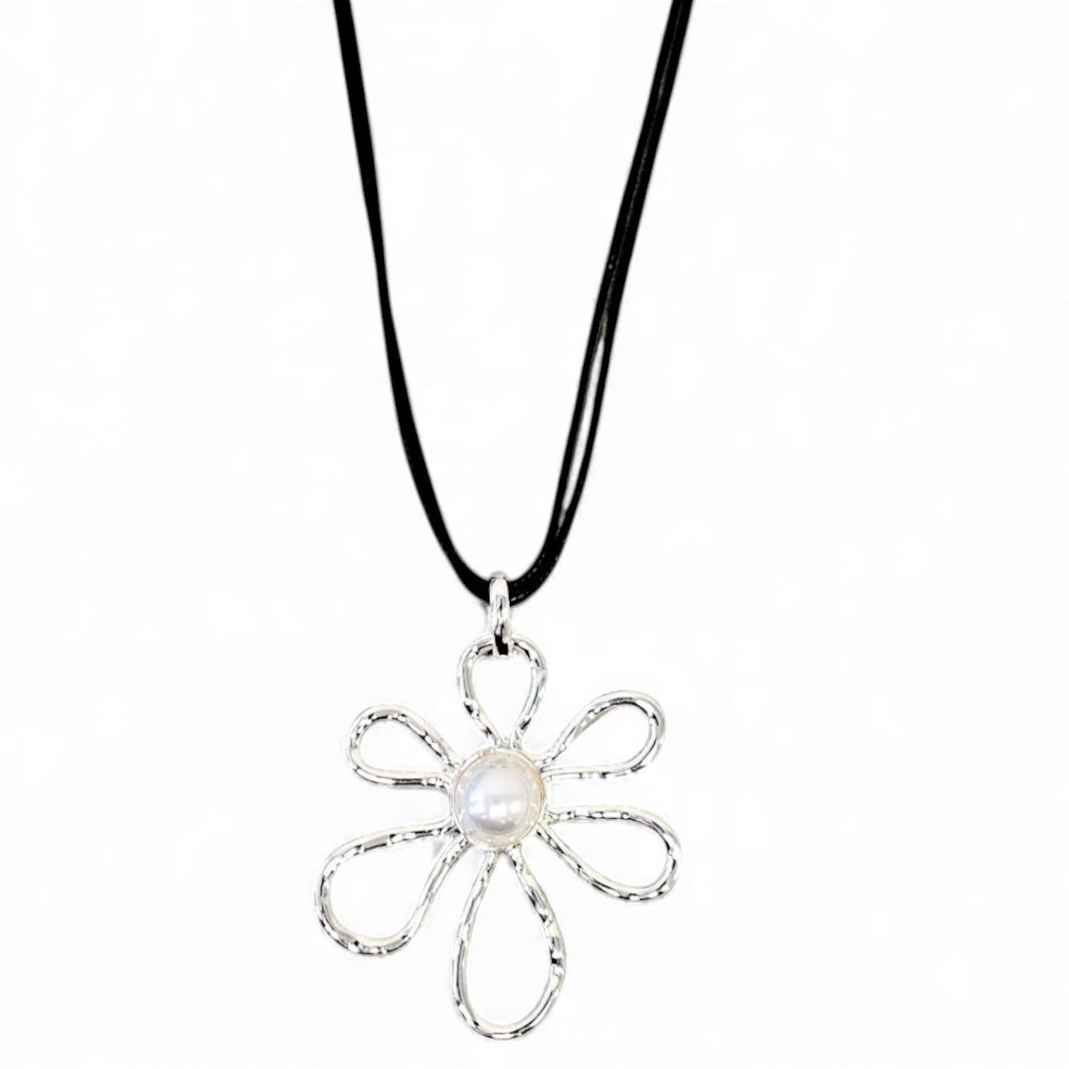Enamel Daisy Bolo Tie, Silver Tips, Yellow, Pearl, Amber, Lemon Stones, made in USA, sold by each This elegant white enamel daisy bolo tie features a beautifully crafted flower design with a choice of gemstone centers to suit your style. Choose from a vibrant yellow, classic pearl, warm amber, or refreshing lemon gemstone to add a personalized touch. The bolo tie combines traditional charm with modern elegance, making it a perfect accessory for any occasion. Dimension: 79.0mm (Daisy)