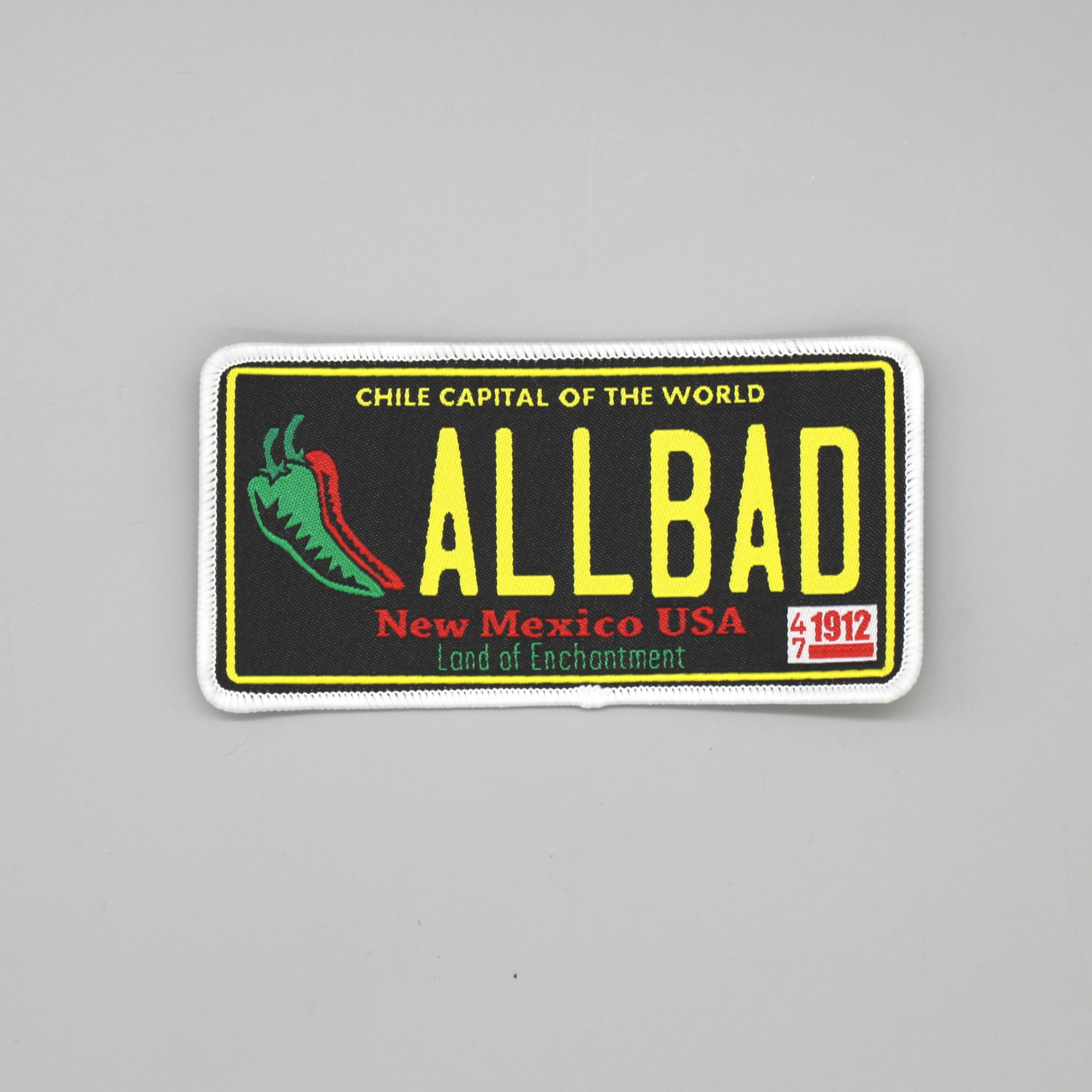 Our machine cut vinyl stickers are outdoor rated and UV resistant. Our AL LA VE sticker references the New Mexico "chile capital of the world" license plate, with a beloved New Mexican slogan. Available as a 4" x 2" or a smaller 2" x 1". Satin finish. Art by Metal