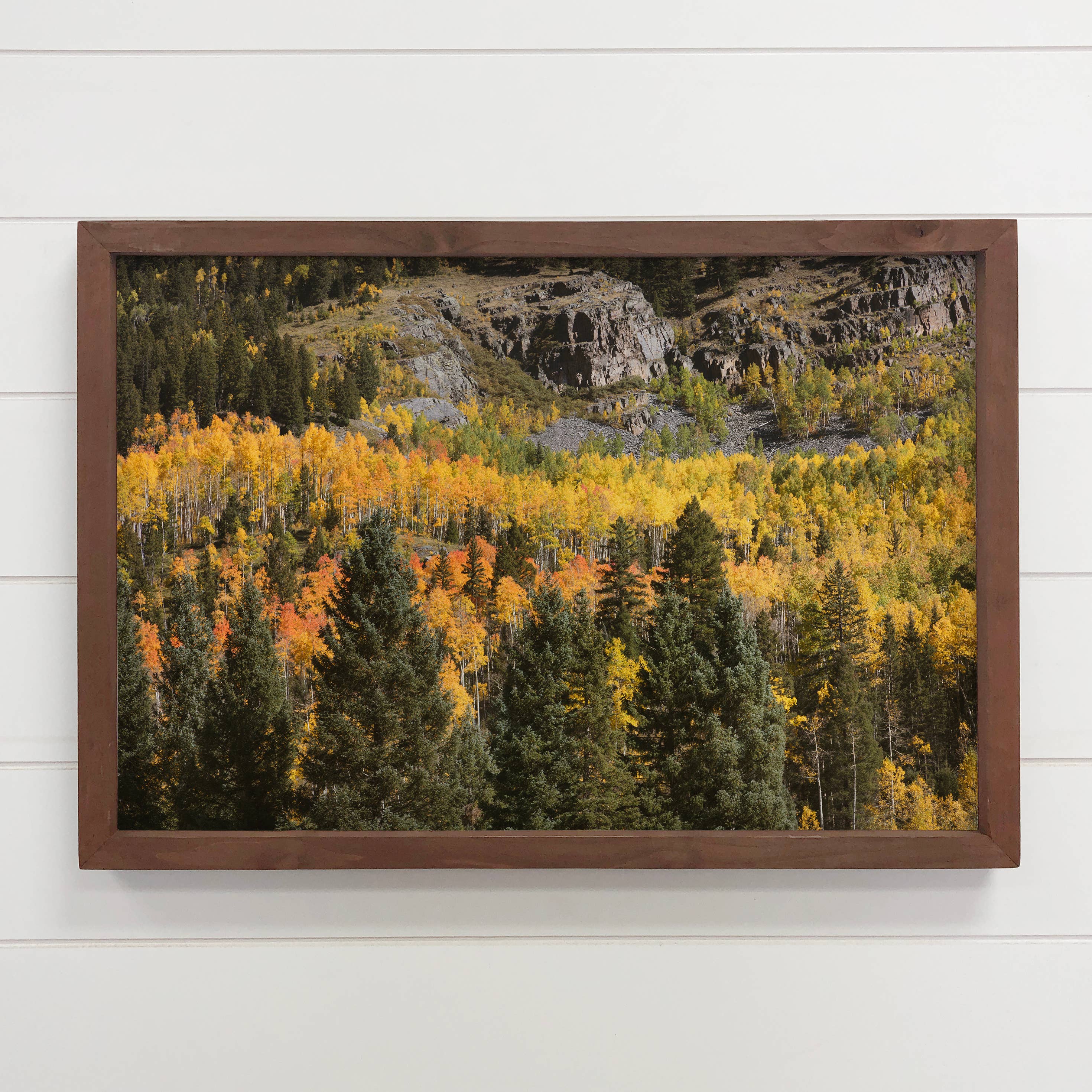 This fall aspen landscape art print is a small reproduction of an original block print by artist, Katie Dean. If you are looking for smaller artwork at an affordable price, this is a great option. Many retail customers who love block print art appreciate this price point as an alternative to the original piece. Fits conveniently in in a standard size frame. Framed piece available for retail shops looking for display options. See "tester" for this option. • Digitally Printed on Felt Weave Paper • Archival Matting Size : 8.5” x 11” • Fits a Standard Frame Size • Packaged with a heavy board in protective sleeve Our Values: Fine Art Based Design / Made in the US / Eco-Friendly / Women Owned Business