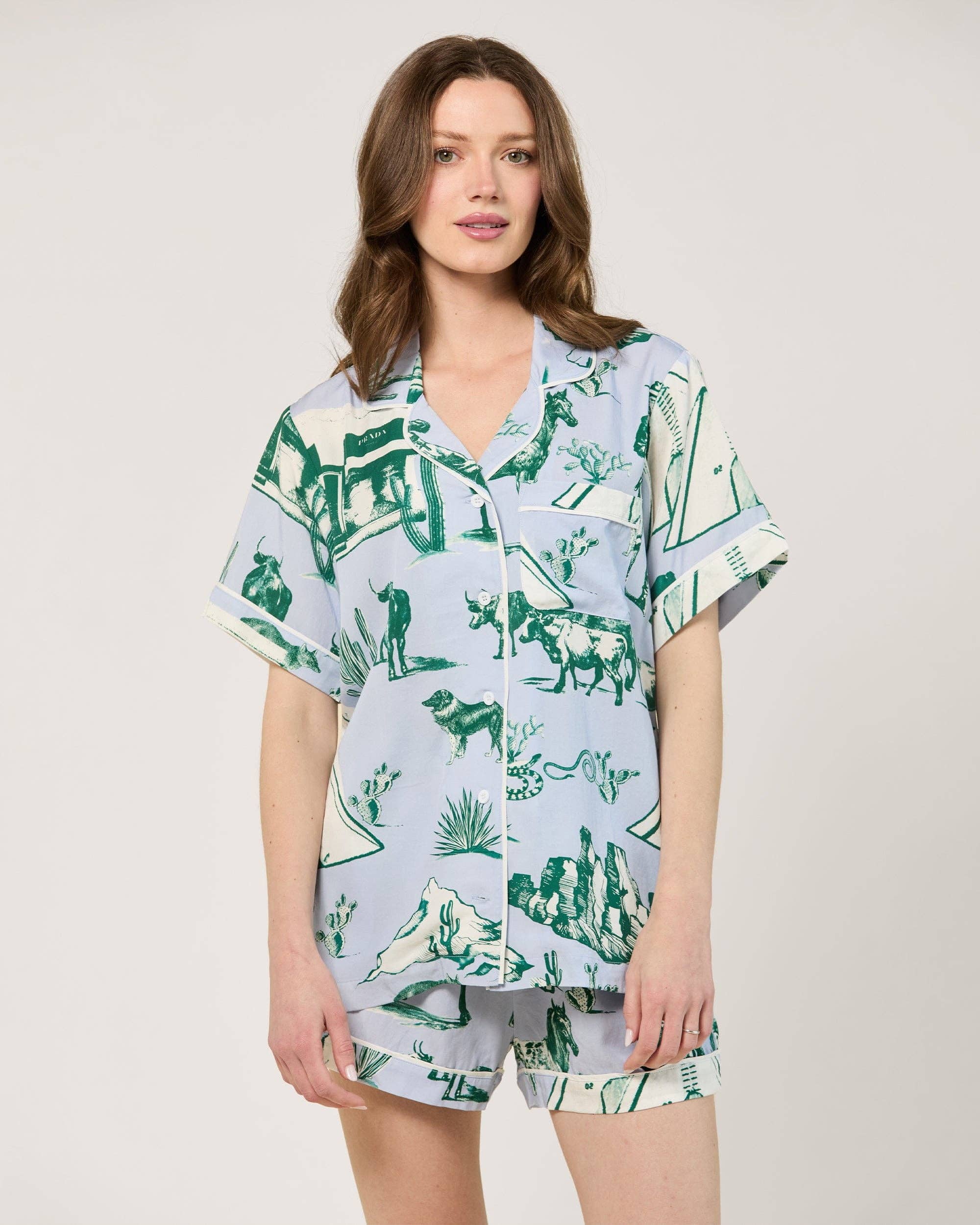 * Pajama Sets, which add a little artistic flair to your nightly ritual. * These PJ Sets are crafted from 100% Cotton, which gets softer with every wash. * Creatively hand-block printed by Indian artisans. * Reminiscent of old pajama designs, the top has a button-down construction with a classic collar. The elastic waistband of the matching pocket pants ensures a snug fit and maximum comfort. * Iron lightly on low temperature for a clean look.