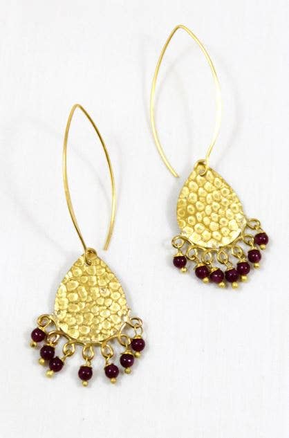 This gorgeous hand embroidered gold teardrop earring is a bold statement of vintage beauty. This wide gold cuff bracelet features a light mesh fabric embroidered with red, blue, pink and yellow flowers with sparkling gold sequins accents. Add this crafty bracelet to any floral inspired vintage or boho look! - Embroidered mesh fabric - Handmade in India - Floral thread design earring with colorful flowers - Brass and embroidered fabric ribbon